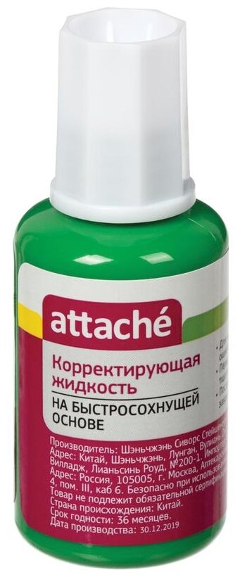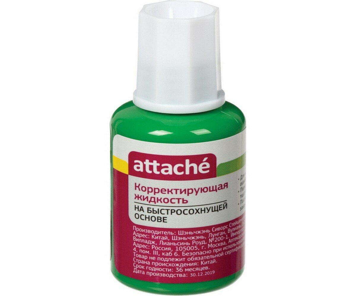 Корректирующая жидкость (штрих) Attache быстросохнущая 20 мл 702955