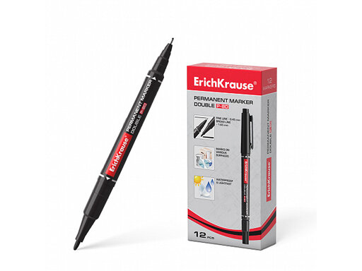 Купить Двухсторонний перманентный маркер ErichKrause Double P-80, цвет чернил черный / набор 12 шт