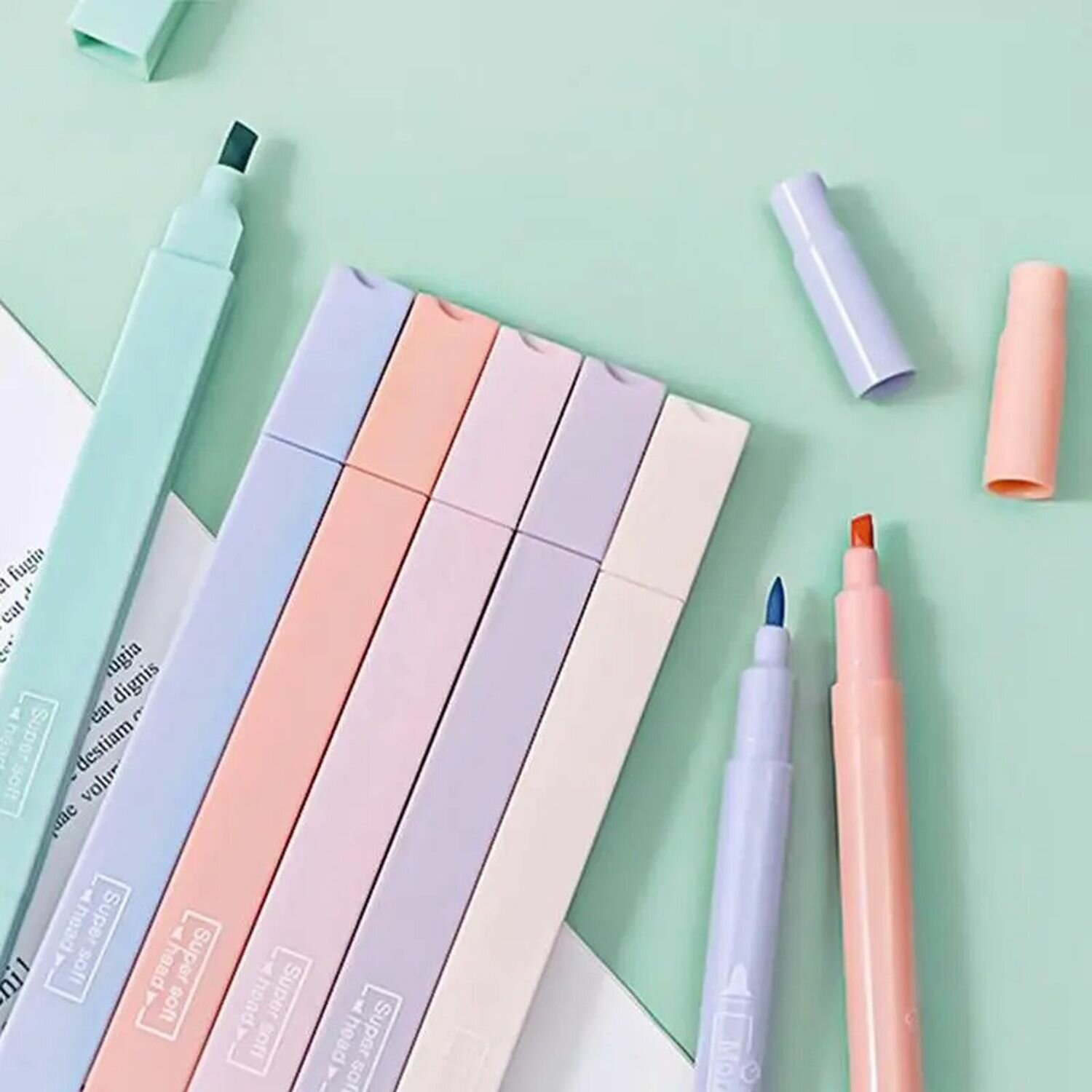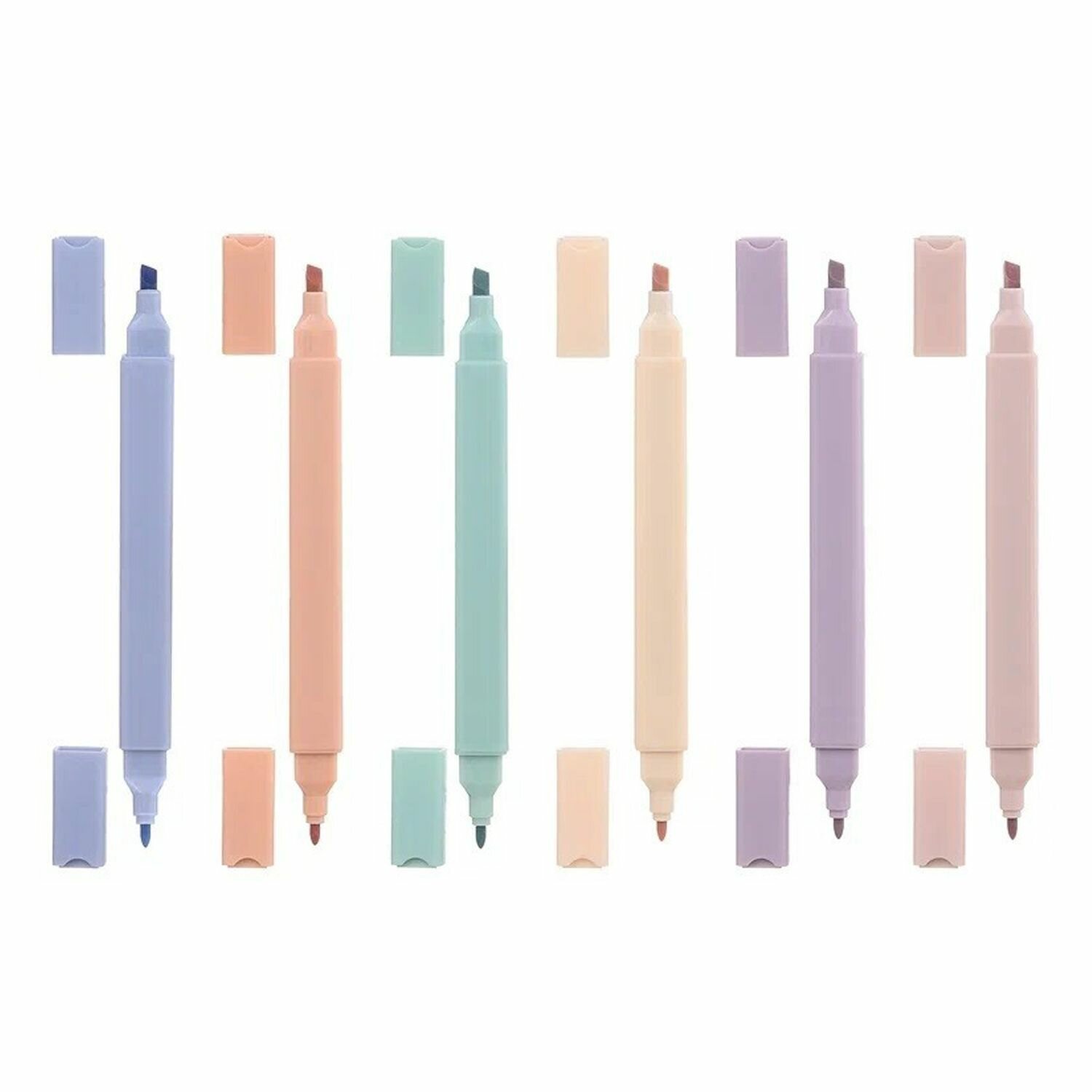 Купить Набор текстовыделителей двусторонних, 6 пастельных цветов, маркер для текста с тонким и скошенным наконечником (1 / 5 мм), флуоресцентные на водной основе