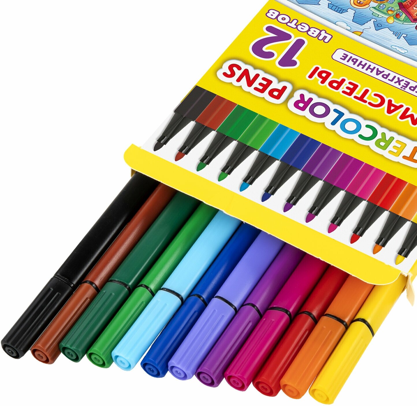 Фломастеры юнландия "водный МИР", 12 цветов, трехгранные, вентилируемый колпачок, картон, 152182 (152182) интересное: