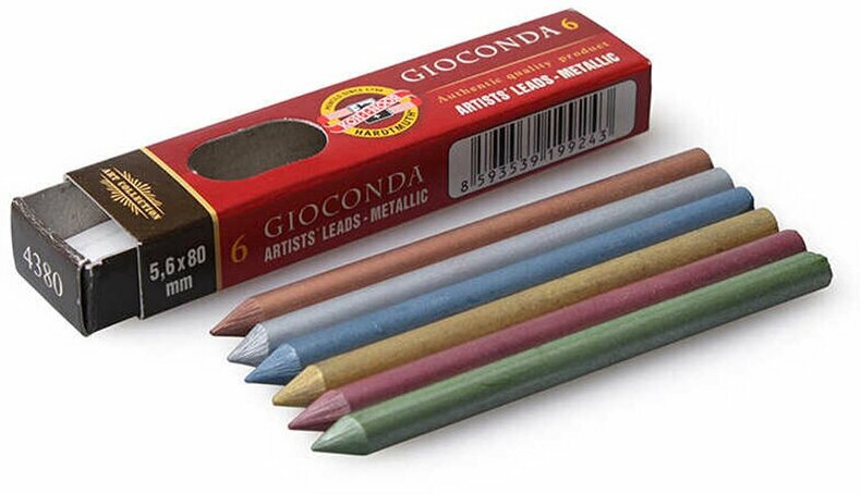 KOH-I-NOOR грифели для цанговых карандашей Gioconda, 5.6 мм, 6 шт. Цвета: белый, оттенки коричневого, черный интересное: