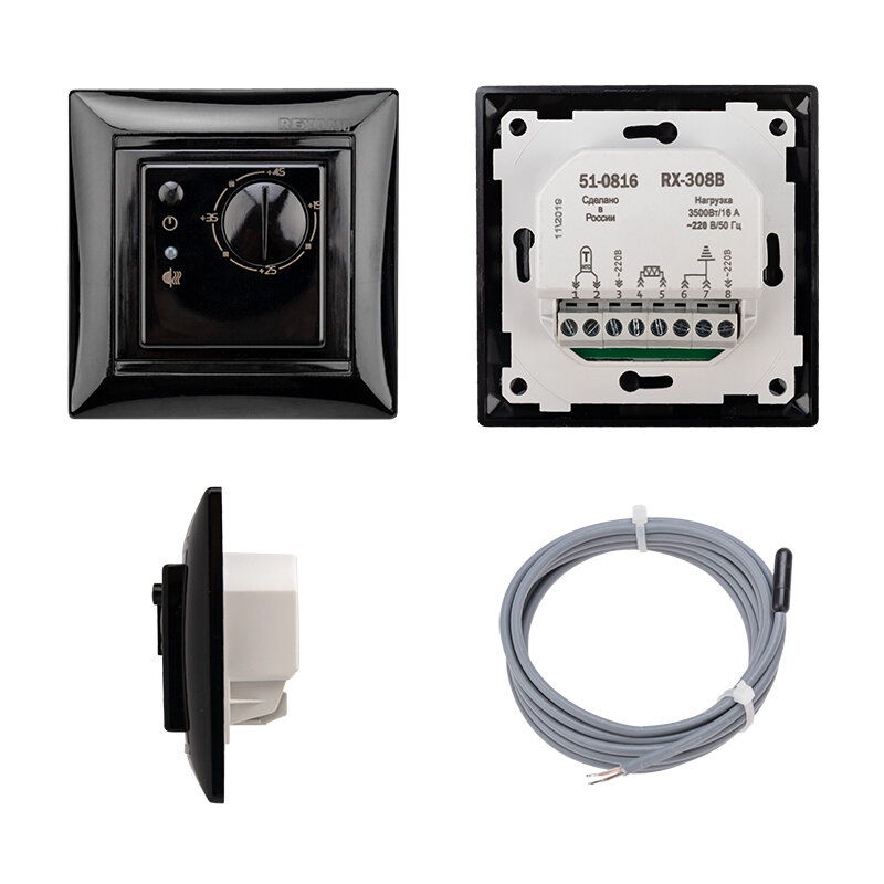 Терморегулятор Rexant RX-308B механический, черный, совместим с Legrand серии Valena