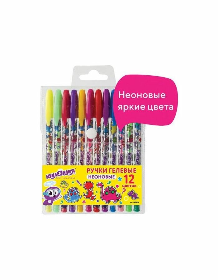 Ручки гелевые юнландия, набор 12 цветов, неон, корпус с печатью, узел 0,7 мм, линия письма 0,5 мм, 142806