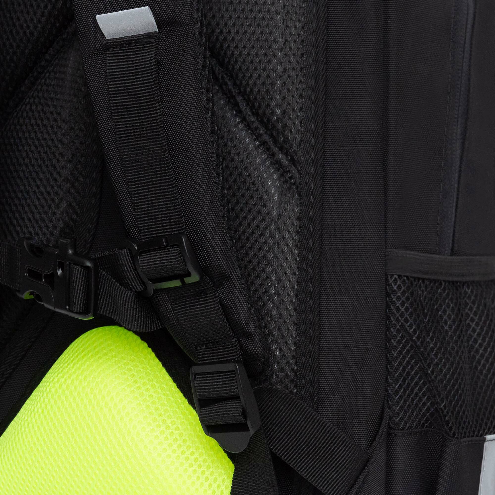 | Особенности | без наполнения / вентилируемая спинка / вентилируемые лямки / водоотталкивающая пропитка / грудная стяжка / жесткое дно / регулируемые лямки / ручка для переноски / светоотражающие элементы / эргономичная спинка |