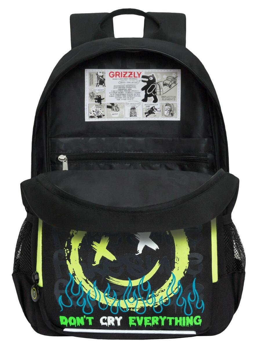 Купить Рюкзак школьный GRIZZLY RB-455-2/2 черный - лимонный