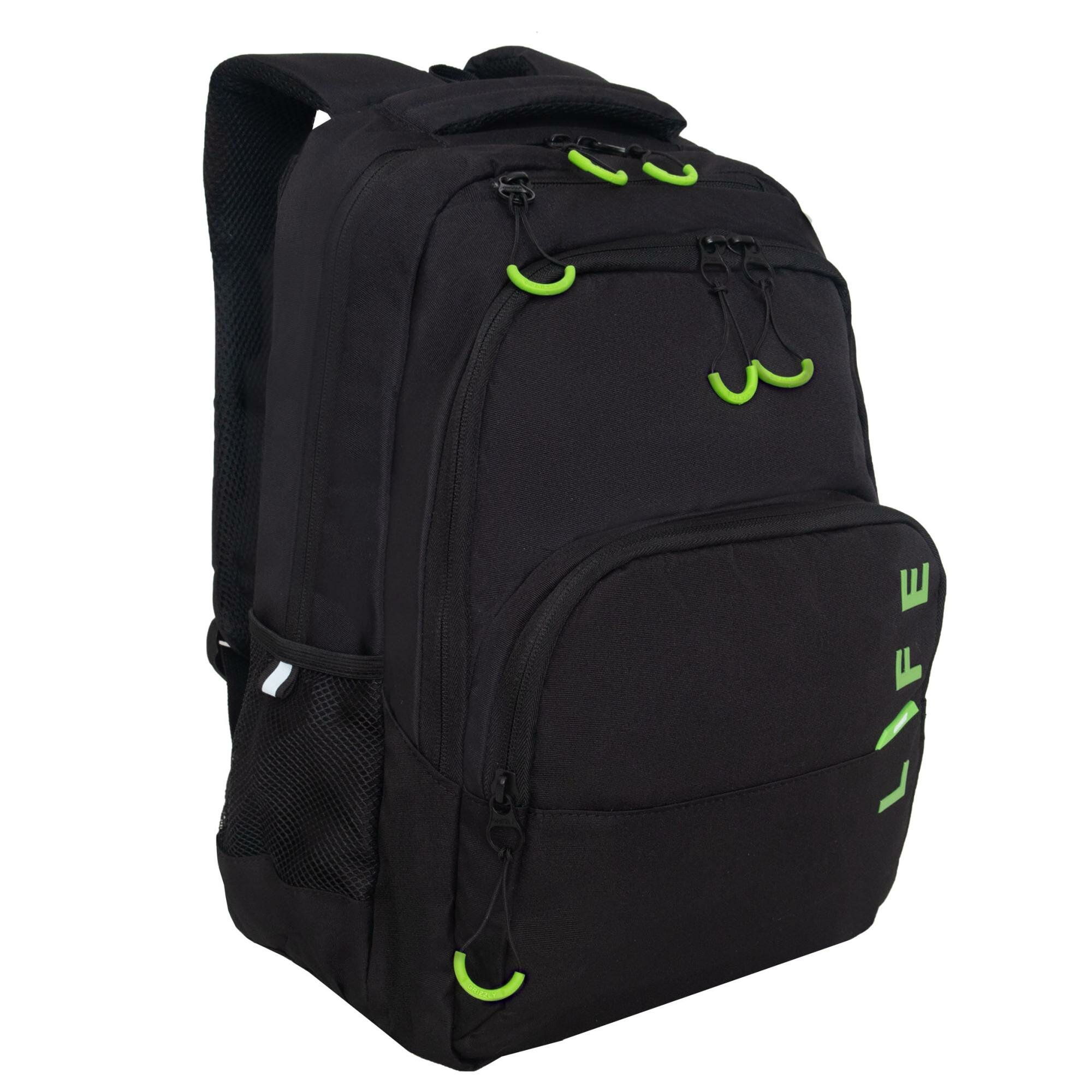 Рюкзак для мальчиков (GRIZZLY) арт RU-430-10/3 черный-салатовый 32х45х23 см