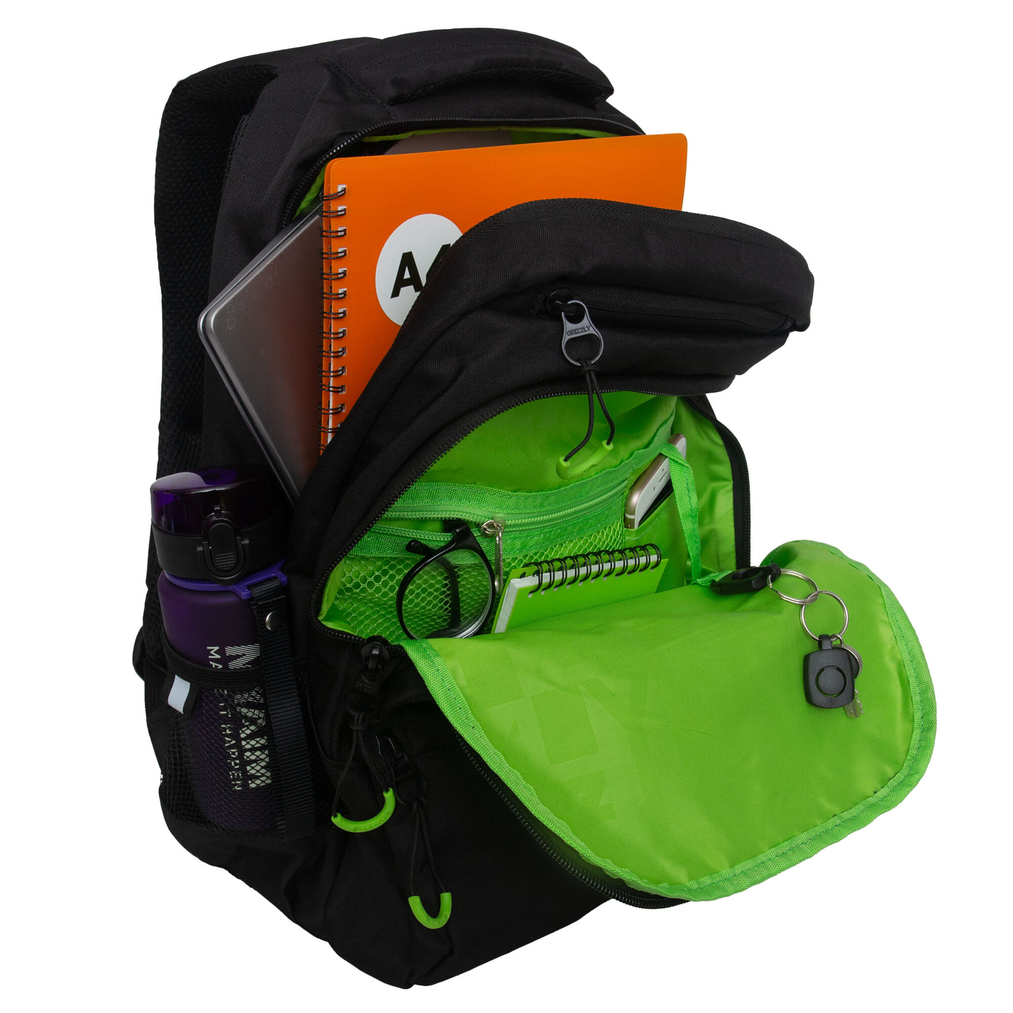 Купить Школьный рюкзак GRIZZLY RU-430-10 черный-салатовый, 32х45х23