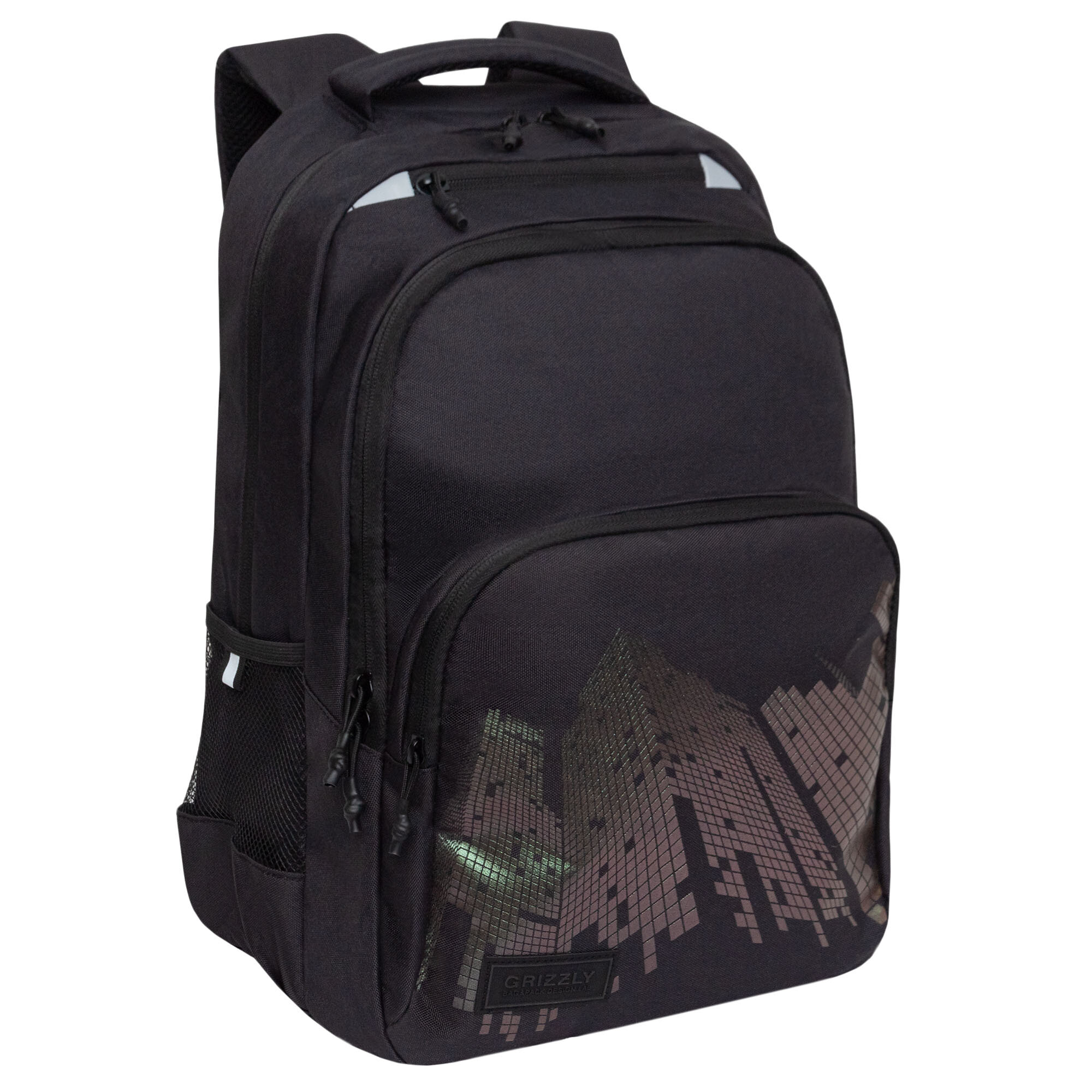 Рюкзак молодёжный 45 х 32 х 23 см, Grizzly, эргономичная спинка, отделение для ноутбука, чёрный