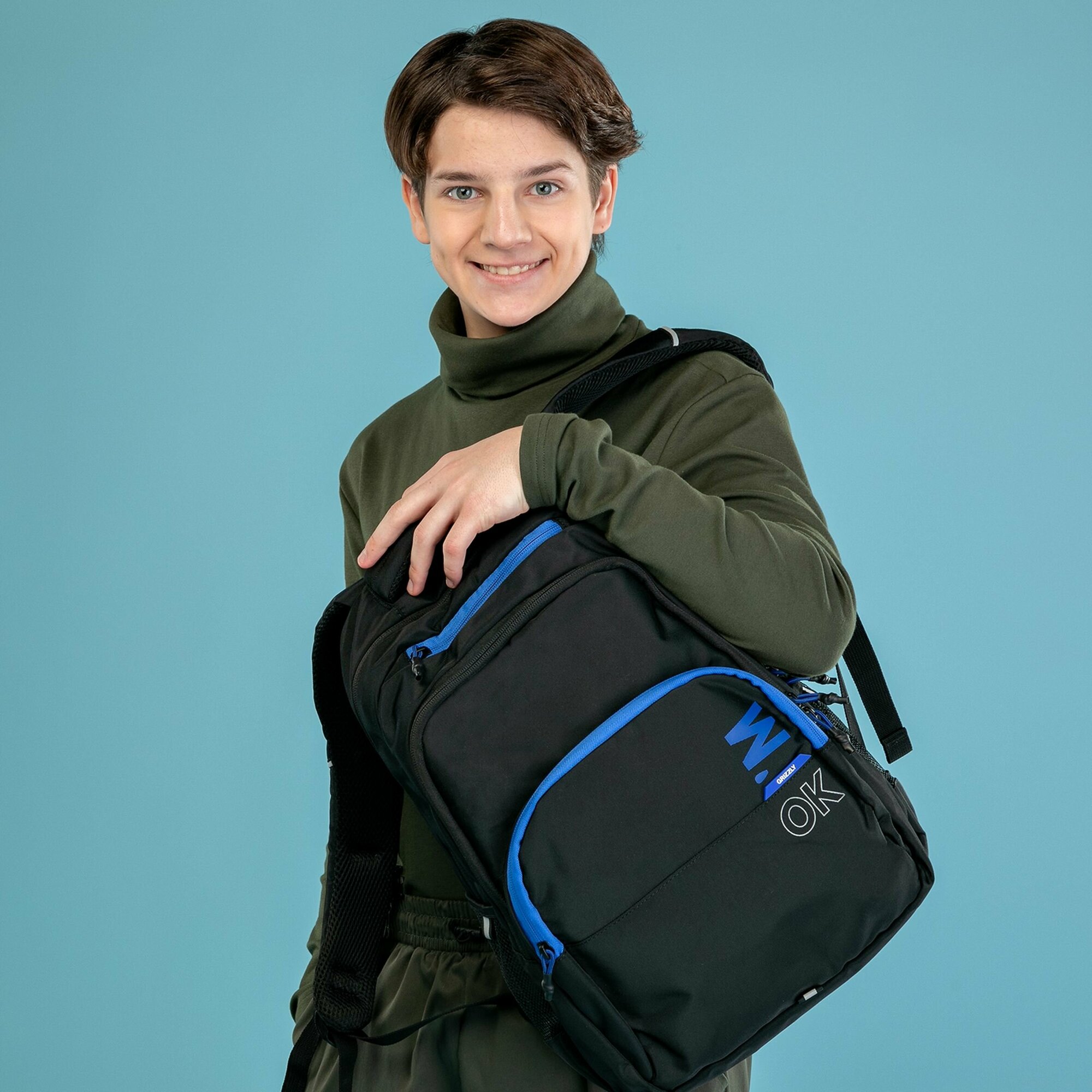 Школьный рюкзак GRIZZLY RU-430-5/1 черный-оливковый