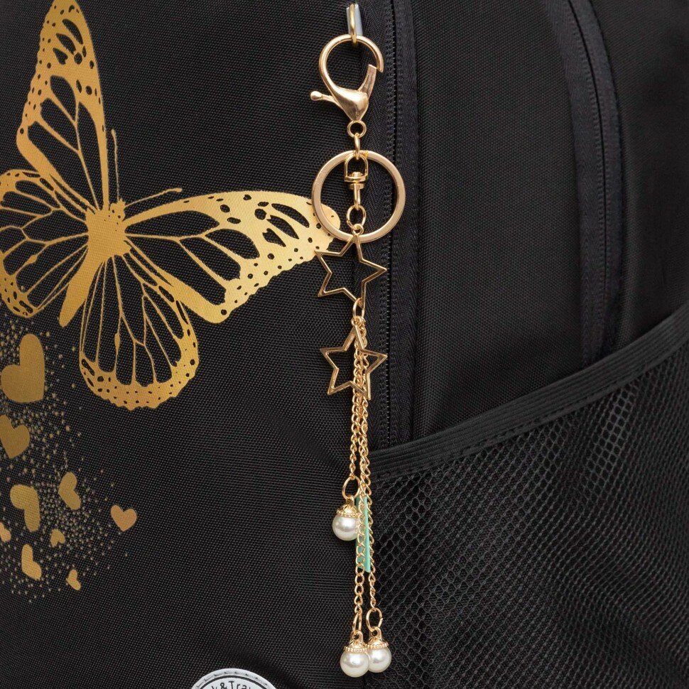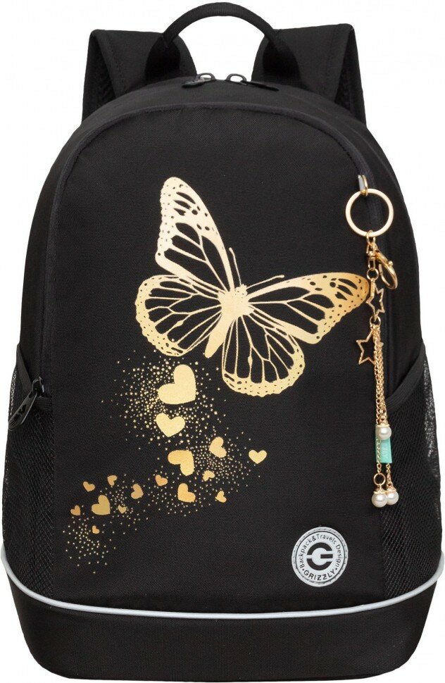 Рюкзак GRIZZLY школьный, анатомическая спинка, 2 отделения, для девочек, GOLDEN BUTTERFLY, 38х28х18
