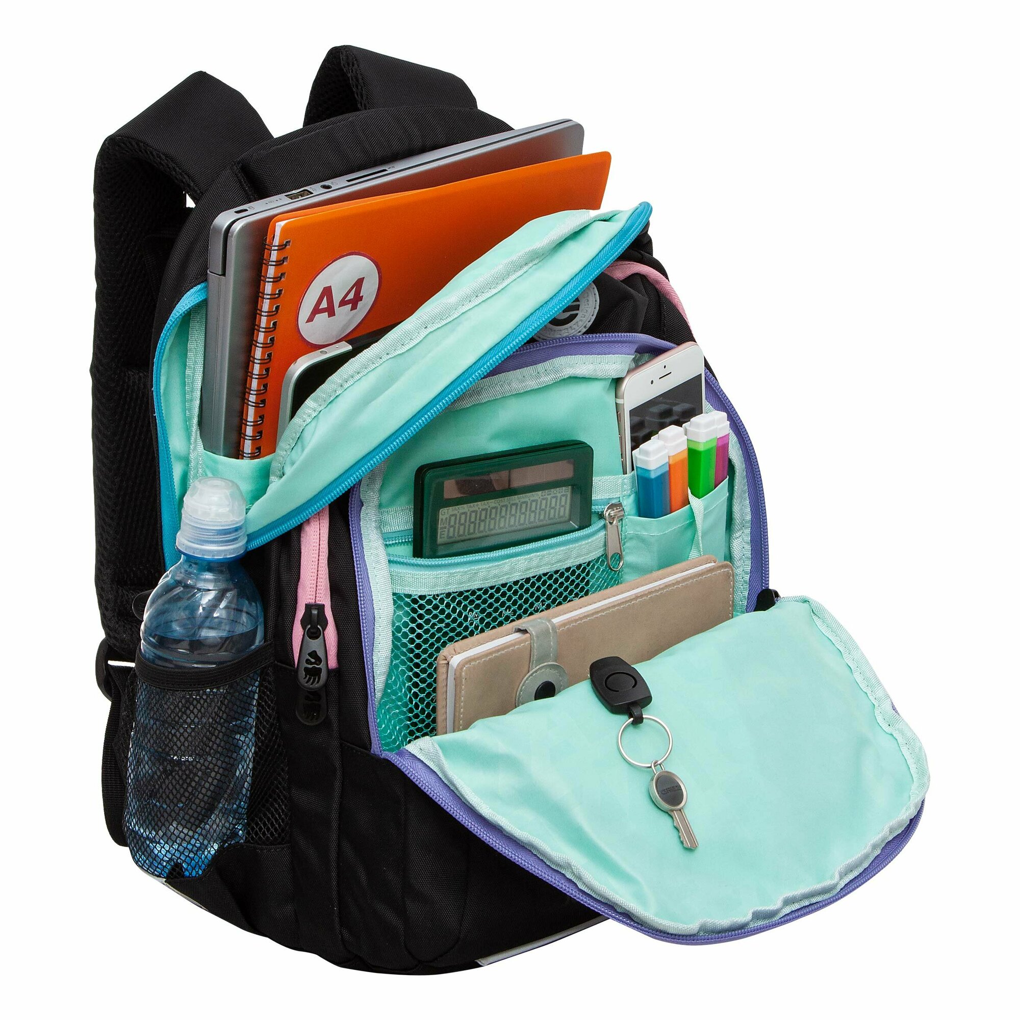Рюкзак школьный GRIZZLY с карманом для ноутбука 13", анатомической спинкой, тремя отделениями, для девочки RG-461-2/2