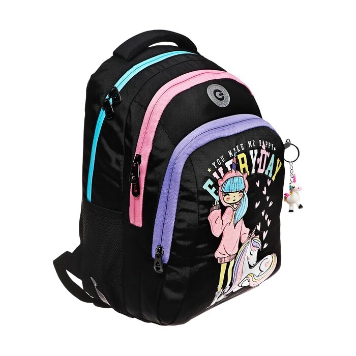 Рюкзак школьный, 40 x 27 x 20 см, эргономичная спинка, отделение для ноутбука, чёрный