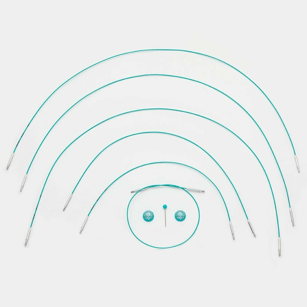36605 Knit Pro Тросик поворотный Mindful (заглушки 2шт, кабельный ключик), длина 76см, нержавеющая сталь с нейлоновым покрытием, бирюзовый