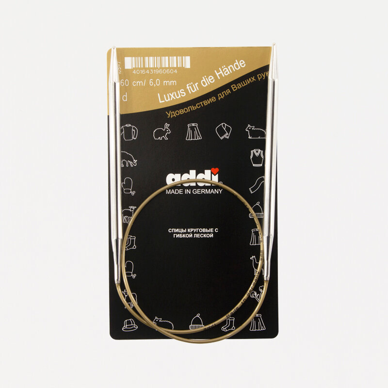 Купить Addi #105-7 Спицы круговые супергладкие из никелированной латуни 6.0-60 см