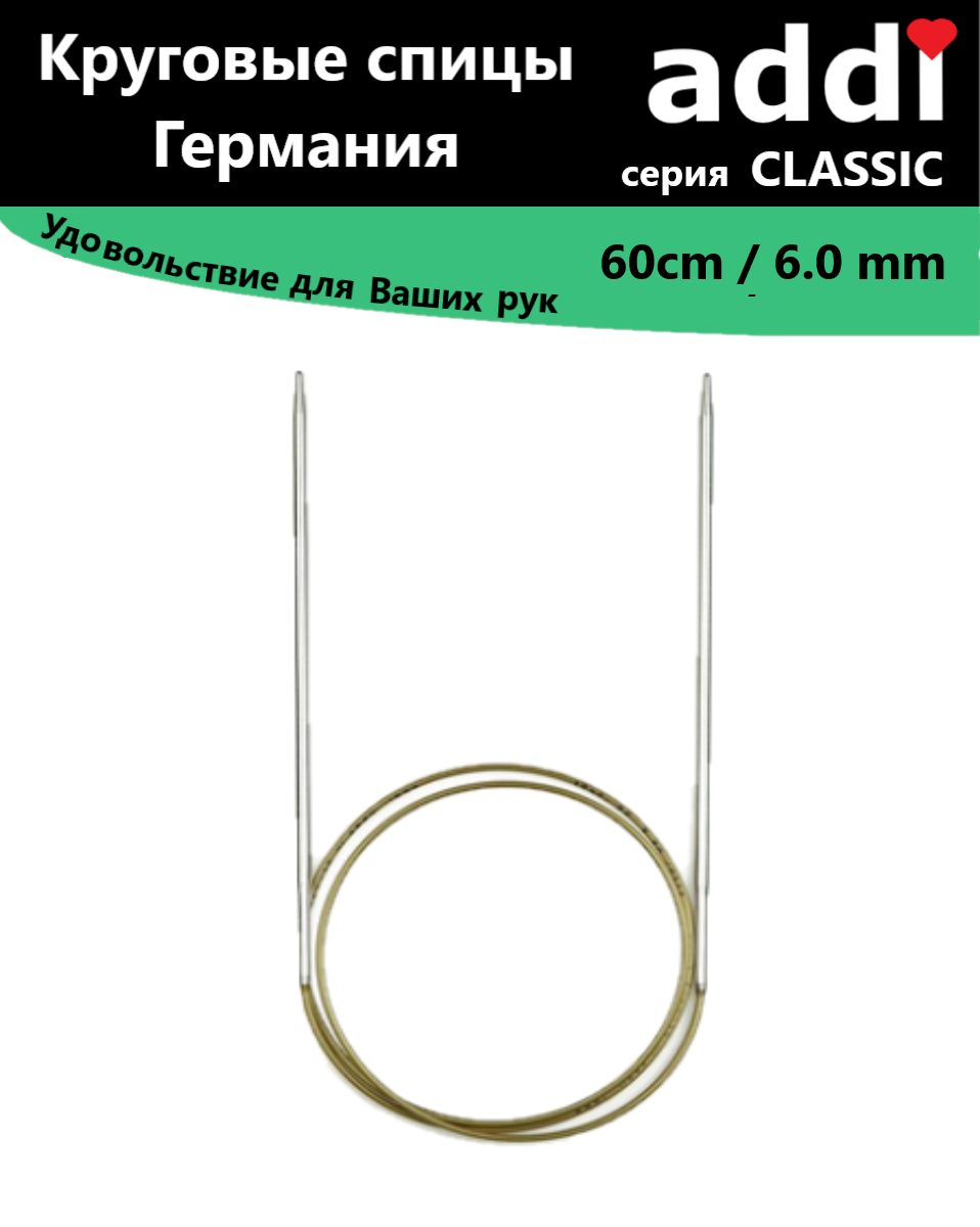 Спицы круговые для вязания Addi 60 см 6.00 мм, (105-7)