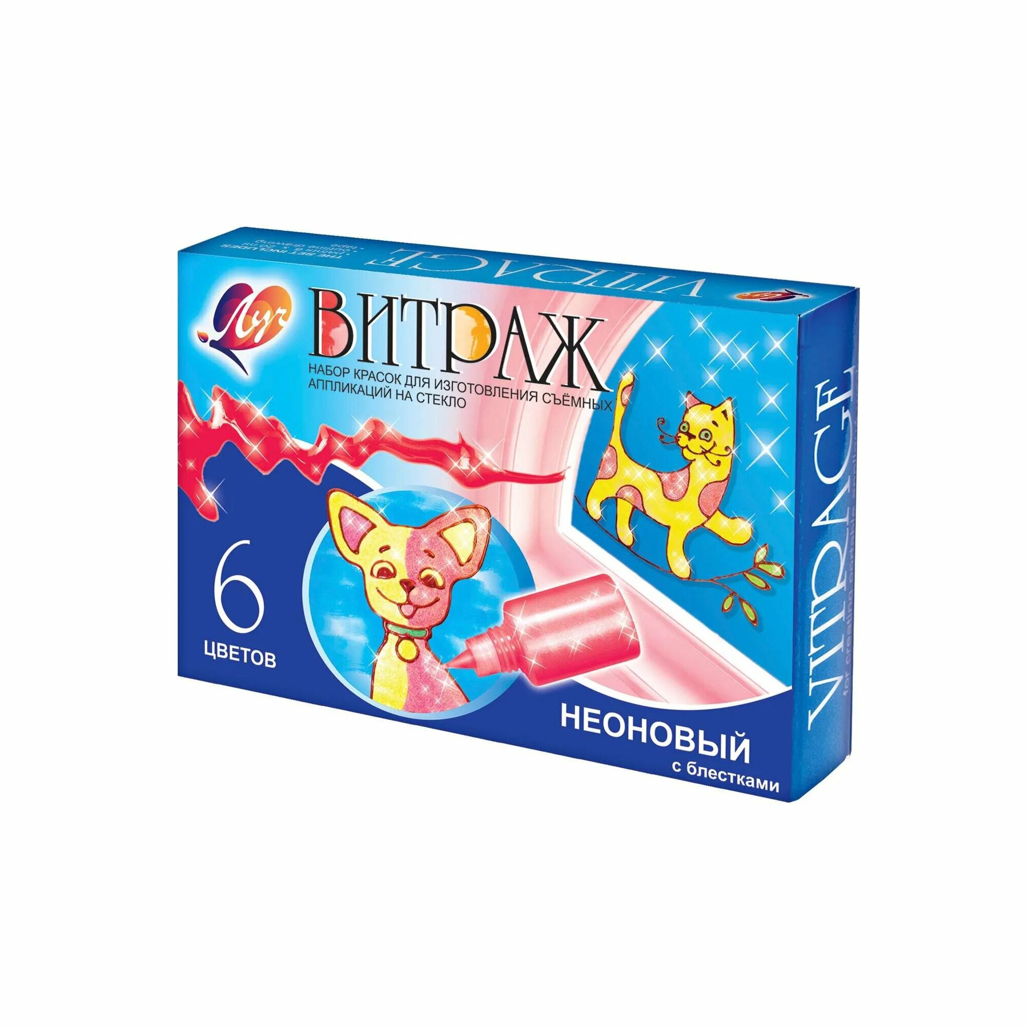 Купить Краски витражные Луч Витраж 6цв неонов с блёстками