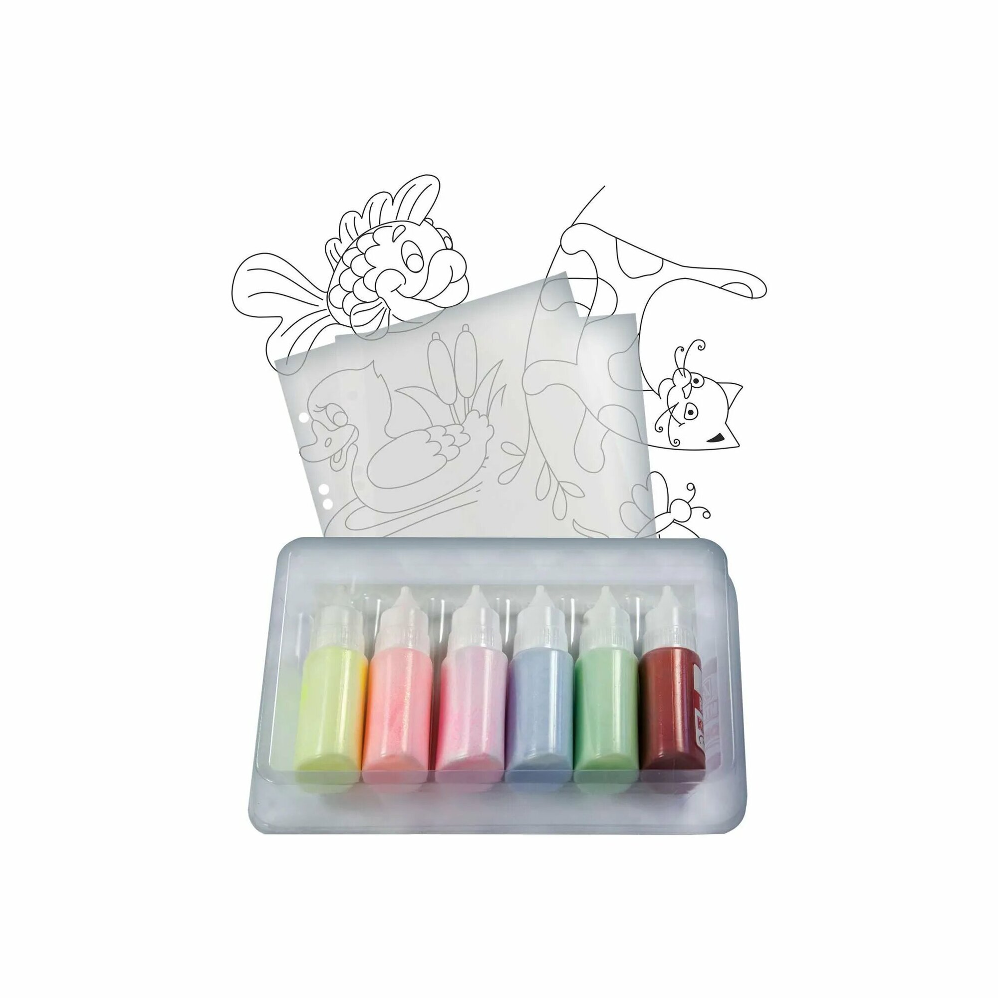 | Комплектация | краска витражная 6 цветов, рисунки-шаблоны, пленка-файл, запасные носики для флаконов 1 шт |