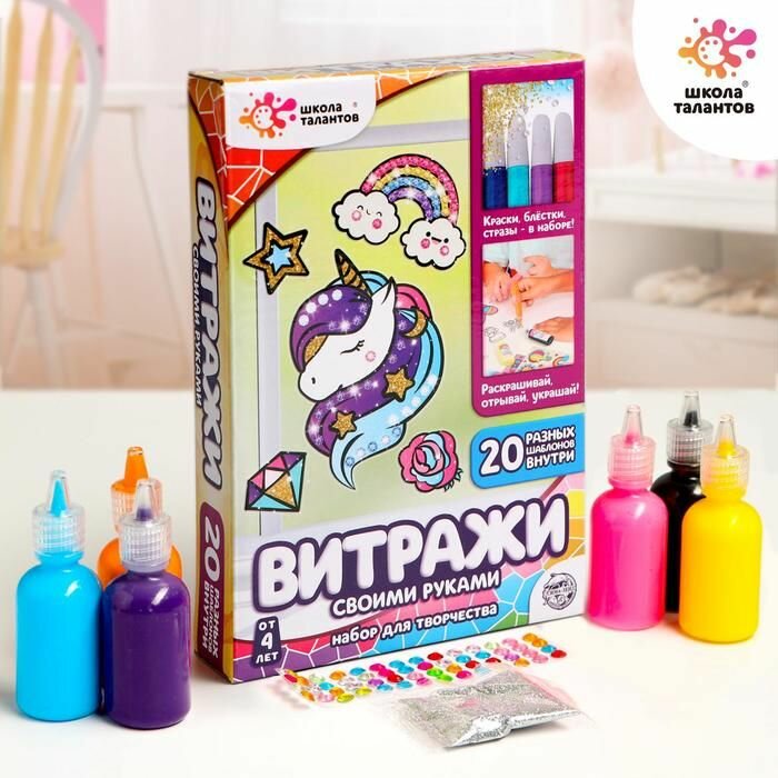 Купить Набор витражей Школа талантов "Раскрась витражики: Единорог", 20 шт