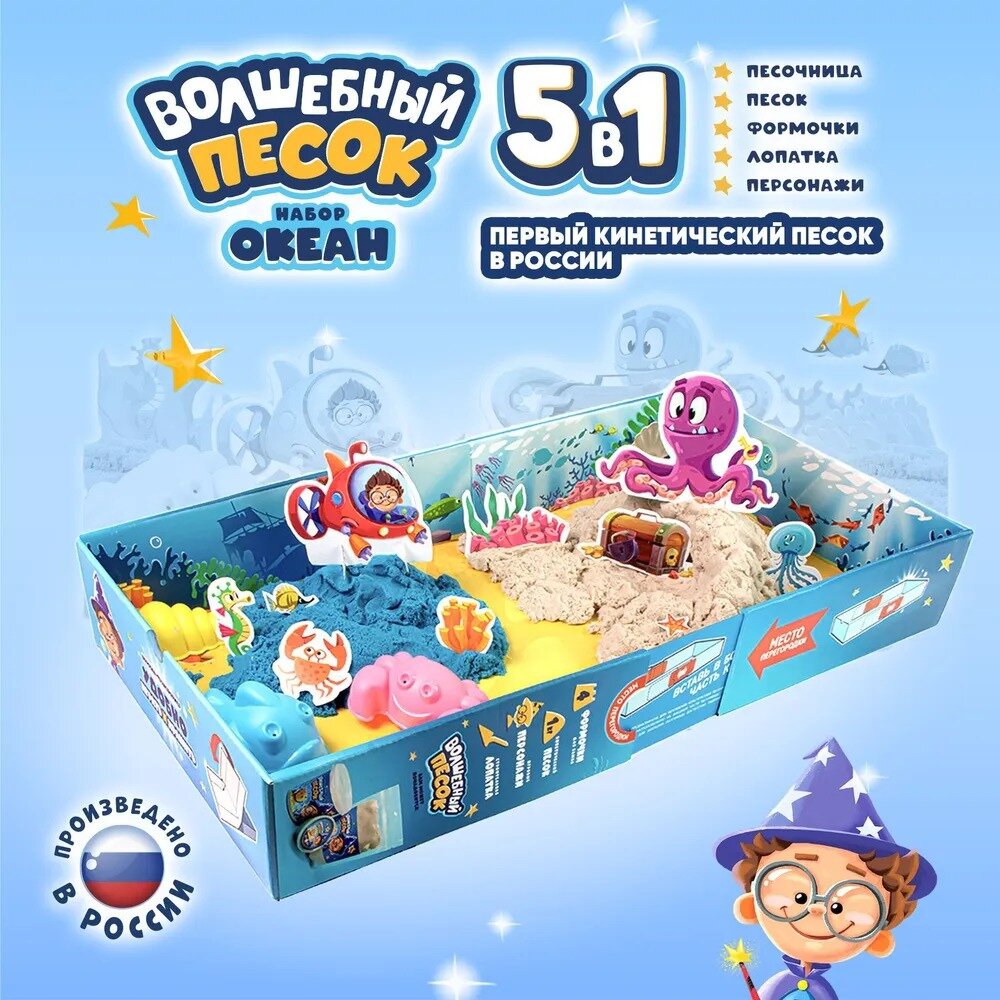 Купить Волшебный песок с песочницей и формочками для детей "Океан", набор для лепки