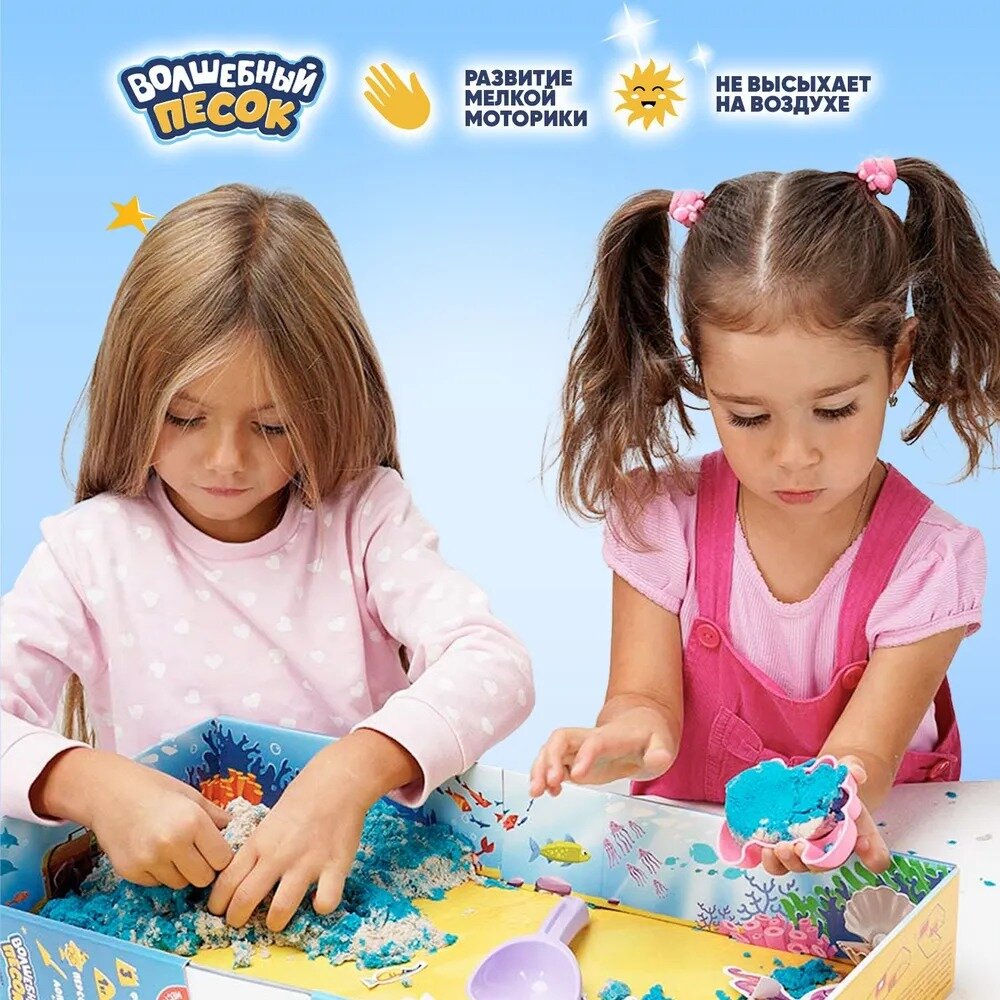 СохранитьВолшебный песок с песочницей и формочками для детей "Океан", набор для лепки интересное:
