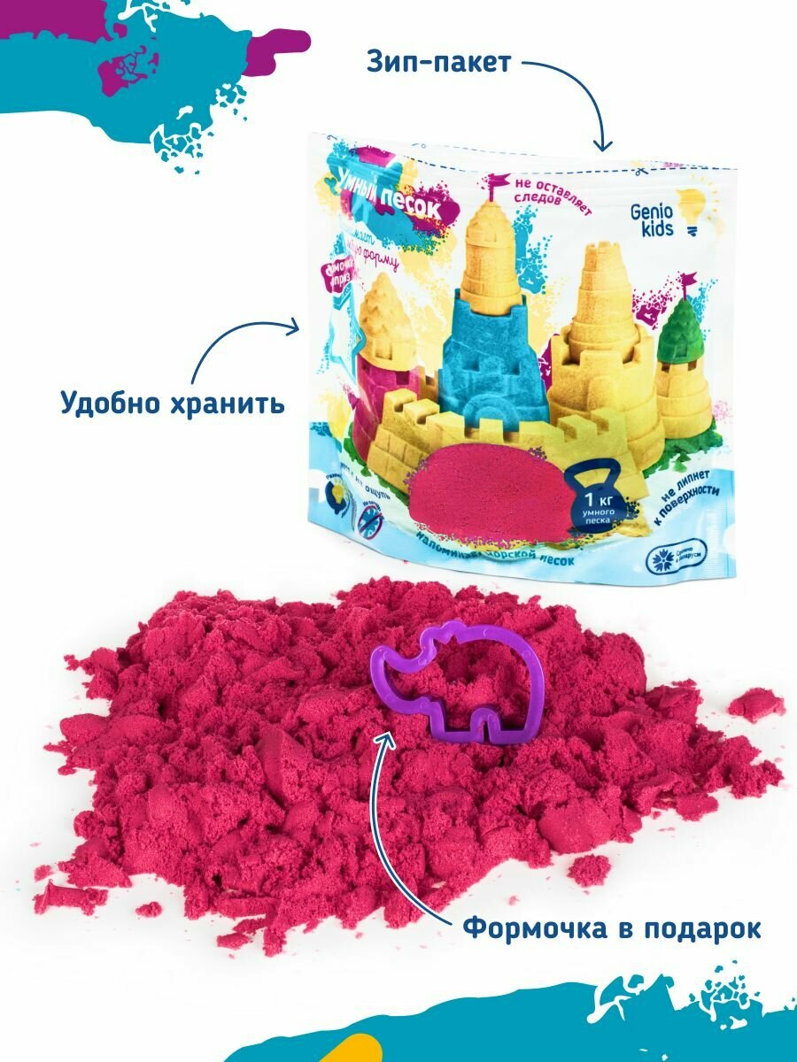 Кинетический песок Genio Kids Розовый 1 кг, от 3 лет, в пакете (SSR073)