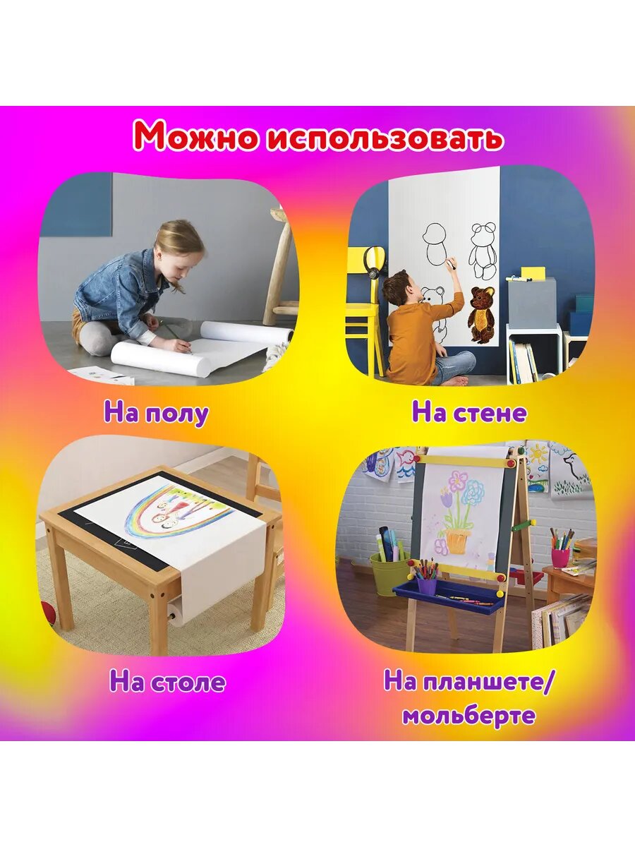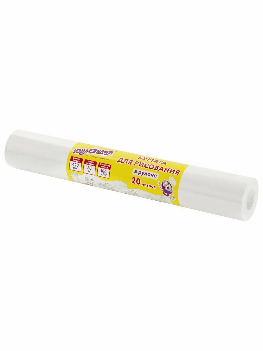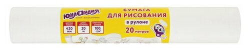 Бумага для рисования в рулоне акварелью/карандашом/красками Юнландия "Рисуй-Играй-Учись", 420 мм х 20 м, плотность 100 г/м2, 112173