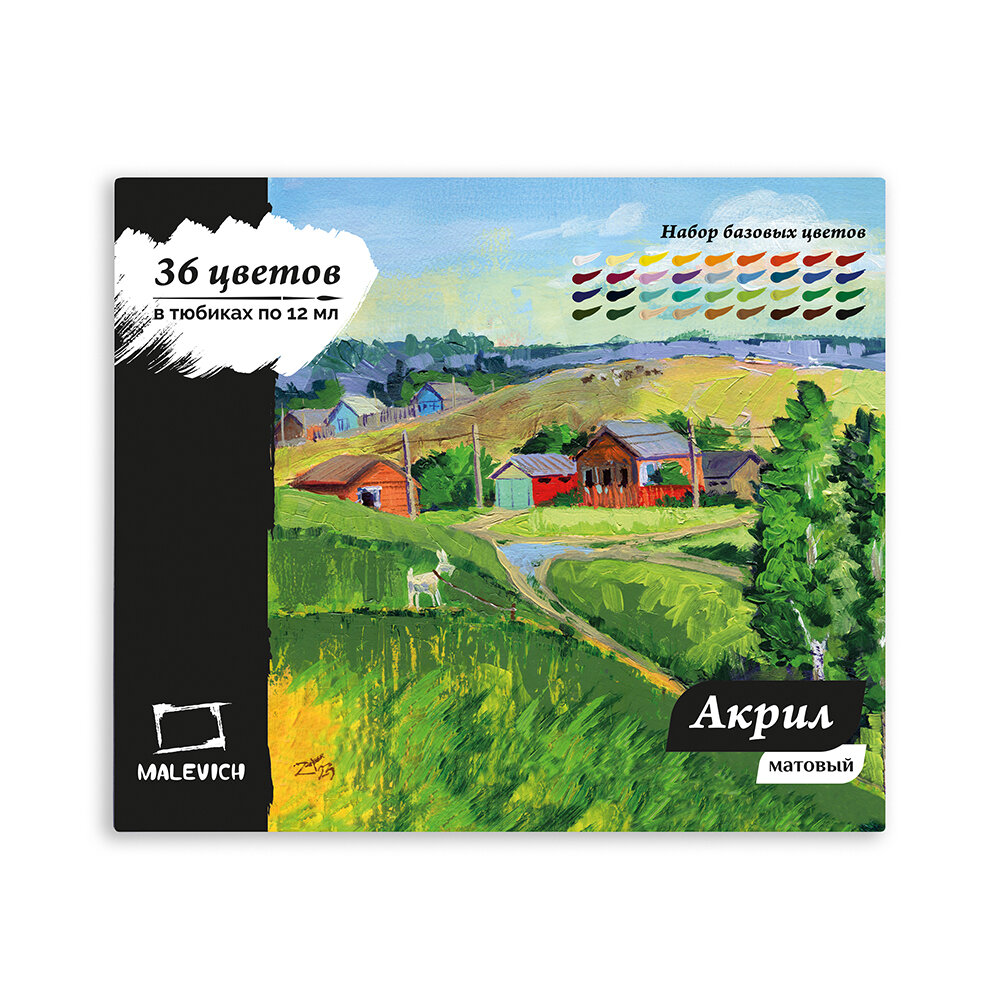 Набор Матовых Акриловых Красок Малевичъ, акрил в тубах, 36 Цветов