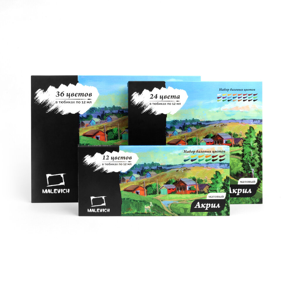 Матовые акриловые краски Малевичъ, набор 36 цветов