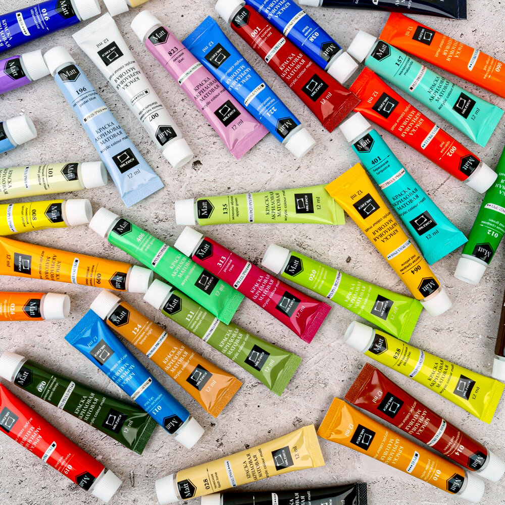 Матовые акриловые краски Малевичъ, набор 12 цветов