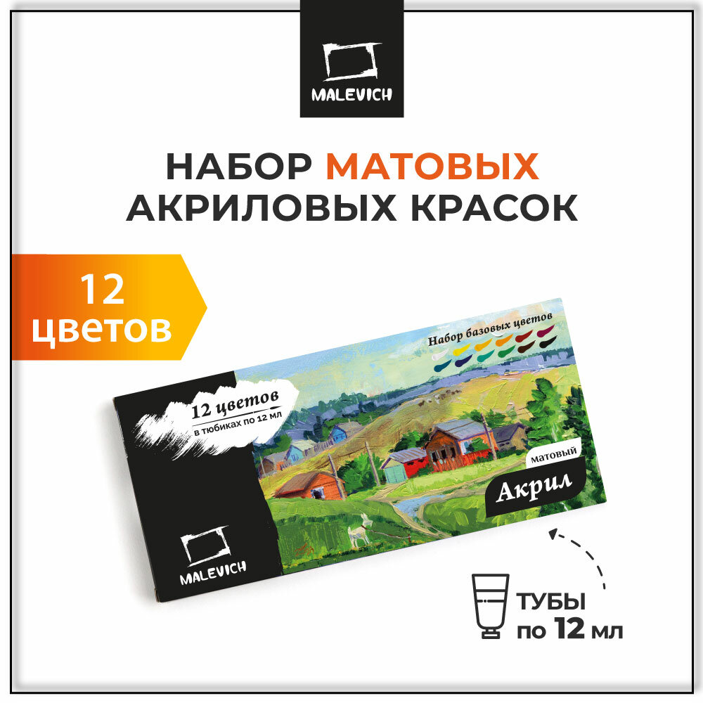 Купить Матовые акриловые краски Малевичъ, 12 цветов, набор