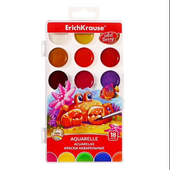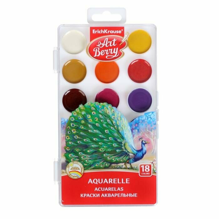 Акварель ArtBerry, 18 цветов, без кисти, с УФ защитой яркости, пластик, европодвес Erich Krause 244928