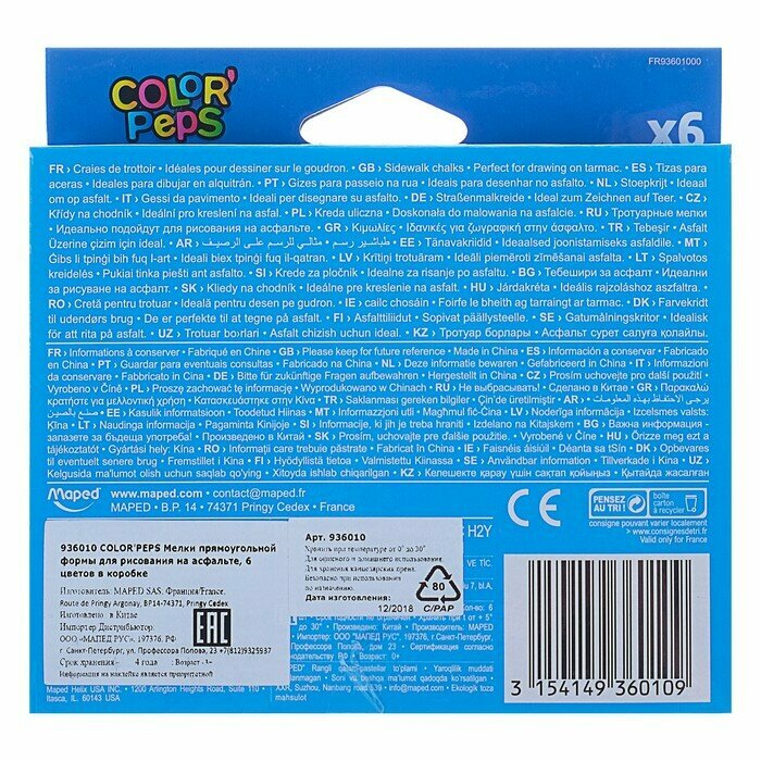 Мел для асфальта Maped COLOR'PEPS цветной, прямоугольной, 6цв/наб,936010 интересное: