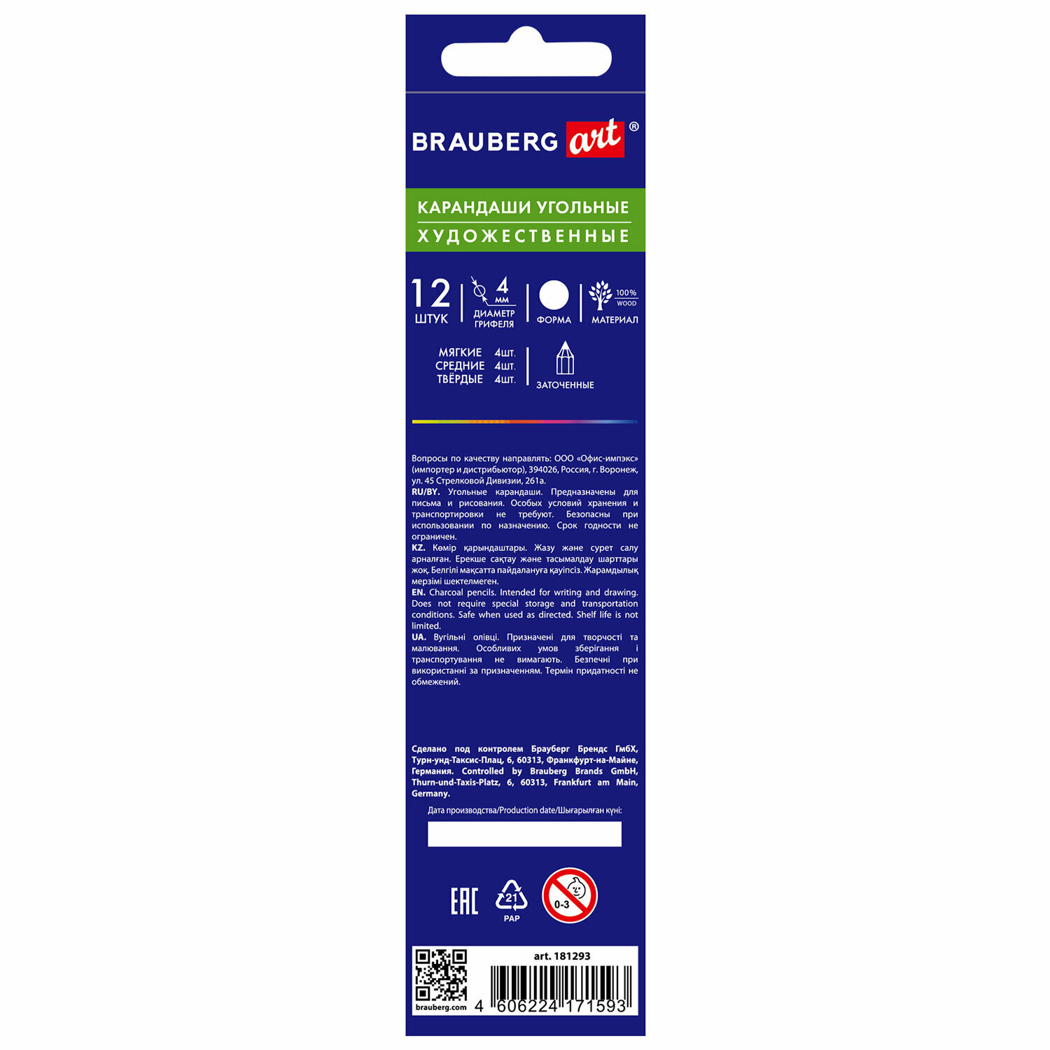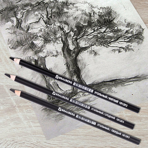 Карандаши Brauberg угольные ART CLASSIC, набор 12 шт, заточенные, (мягкий, средний, твердый), 181293 интересное:
