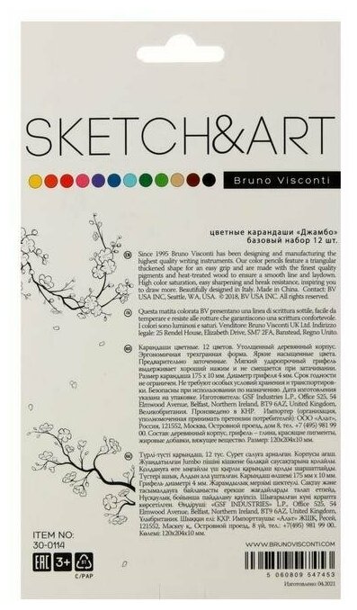 Карандаши 12 цветов SKETCH&ART, утолщённые интересное: