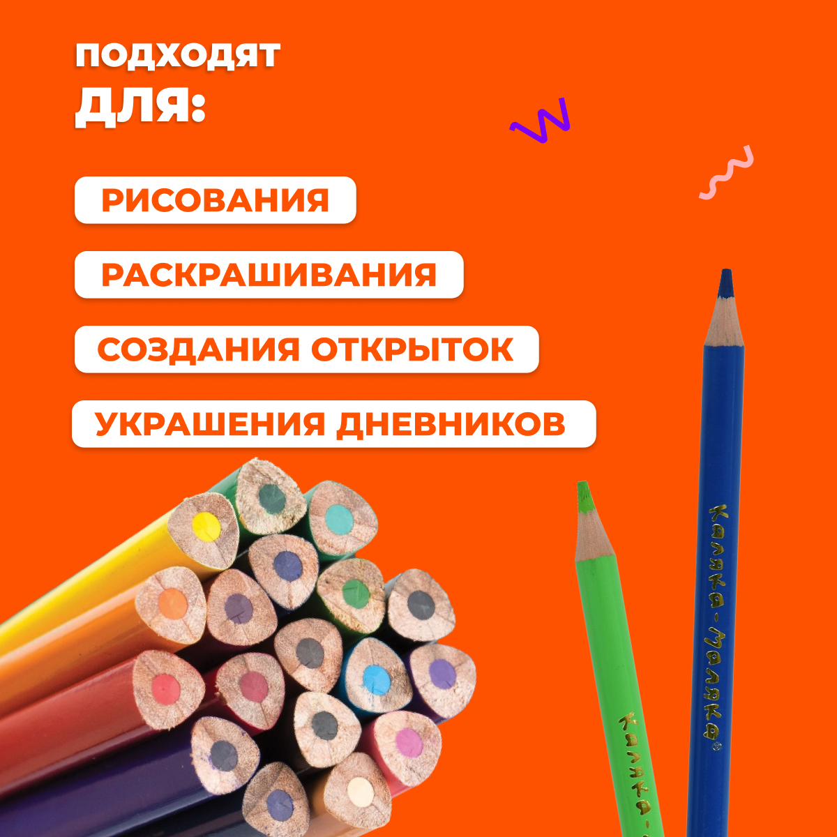 Цветные карандаши Каляка-Маляка с ластиком, пластиковые трехгранные, в наборе 24 цв. интересное: