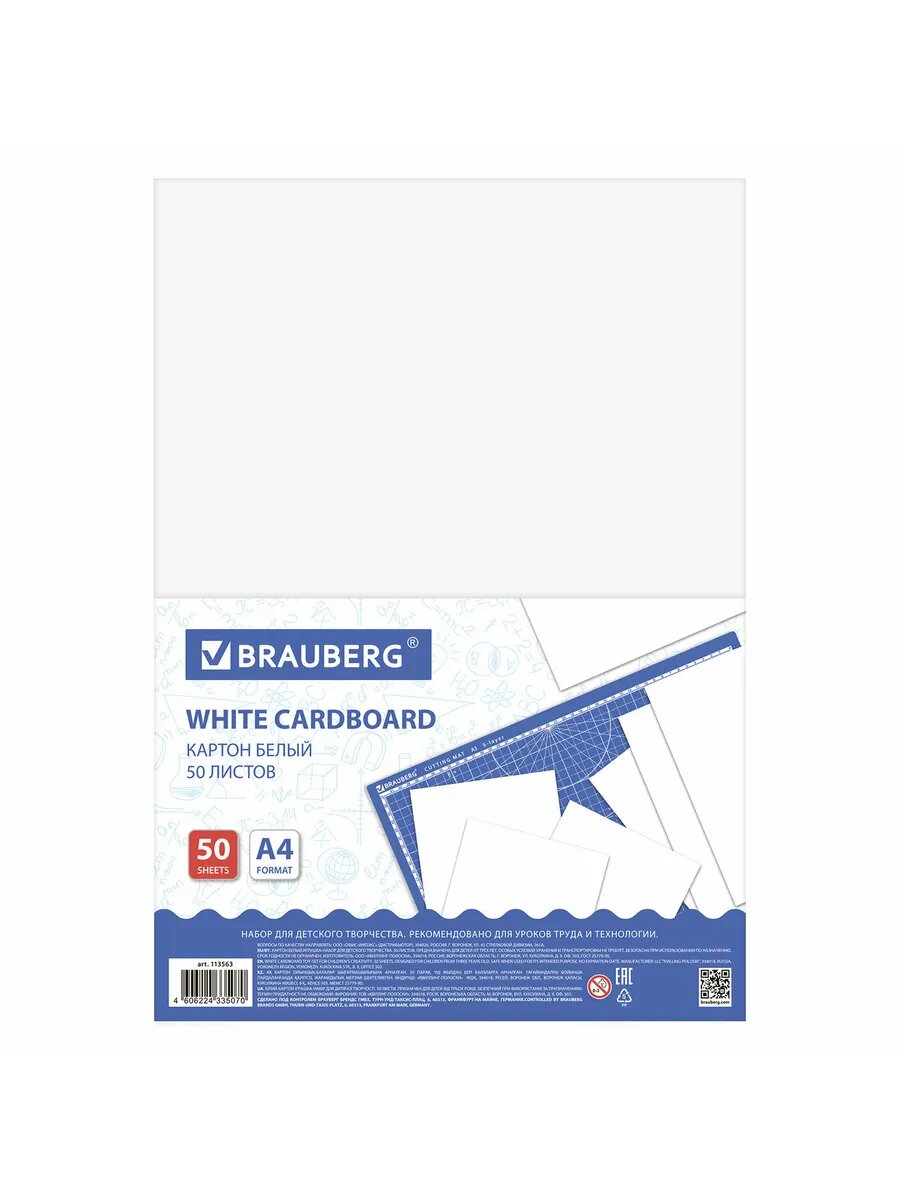 СохранитьКартон белый А4 мелованный (белый оборот), 50 листов, BRAUBERG, 210х297 мм, 113563 интересное:
