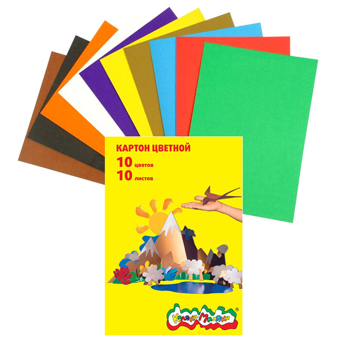 Купить Картон цветной А4, 10 листов, 10 цветов «Каляка-Маляка», немелованный