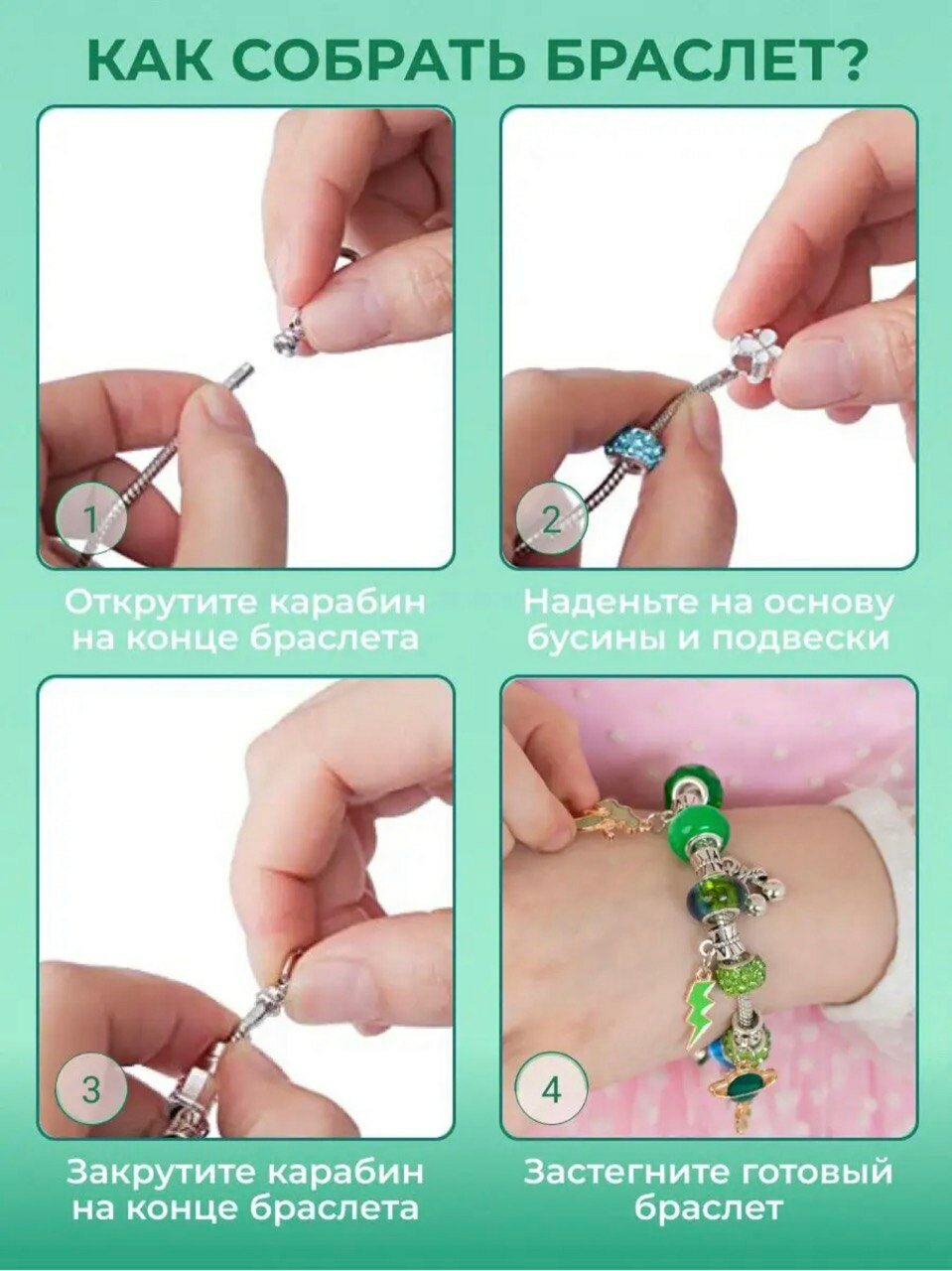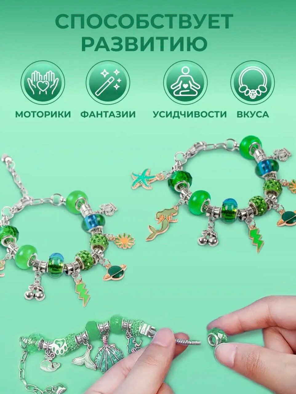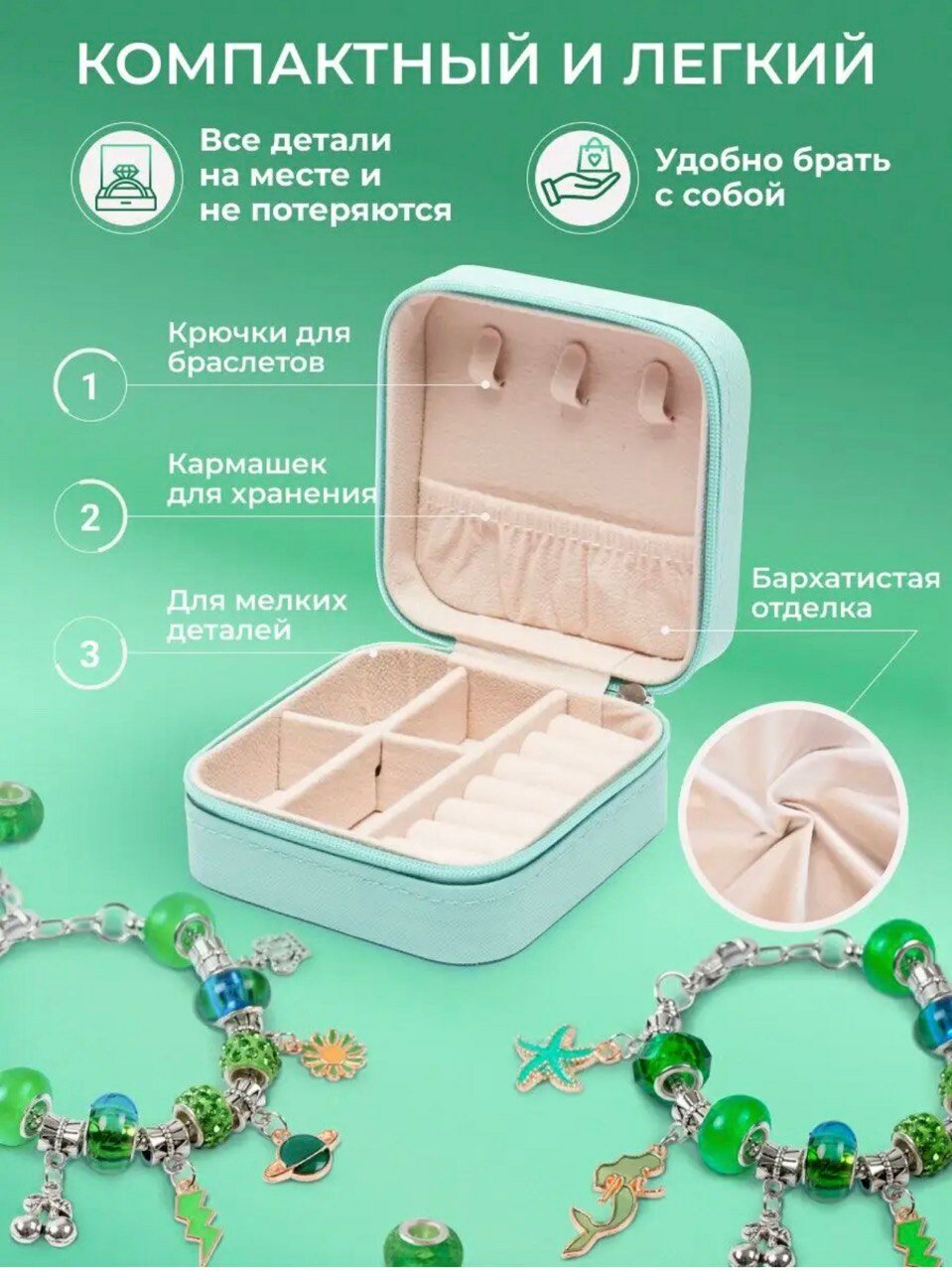 Купить Зелёный набор для создания браслетов и украшений в шкатулке, подарок для девочки и подруги на день рождения
