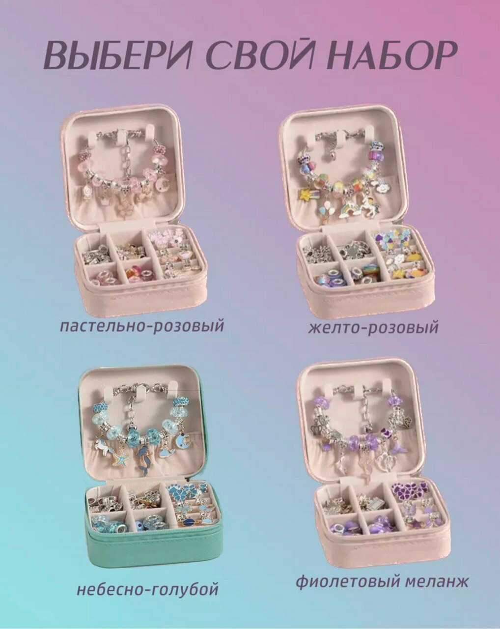Фиолетовый набор для создания браслетов и украшений в шкатулке, подарок для девочки и подруги на день рождения