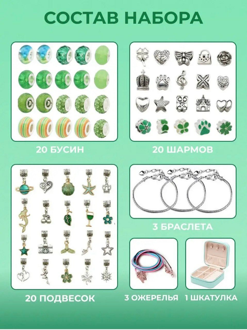 СохранитьЗелёный набор для создания браслетов и украшений в шкатулке, подарок для девочки и подруги на день рождения интересное: