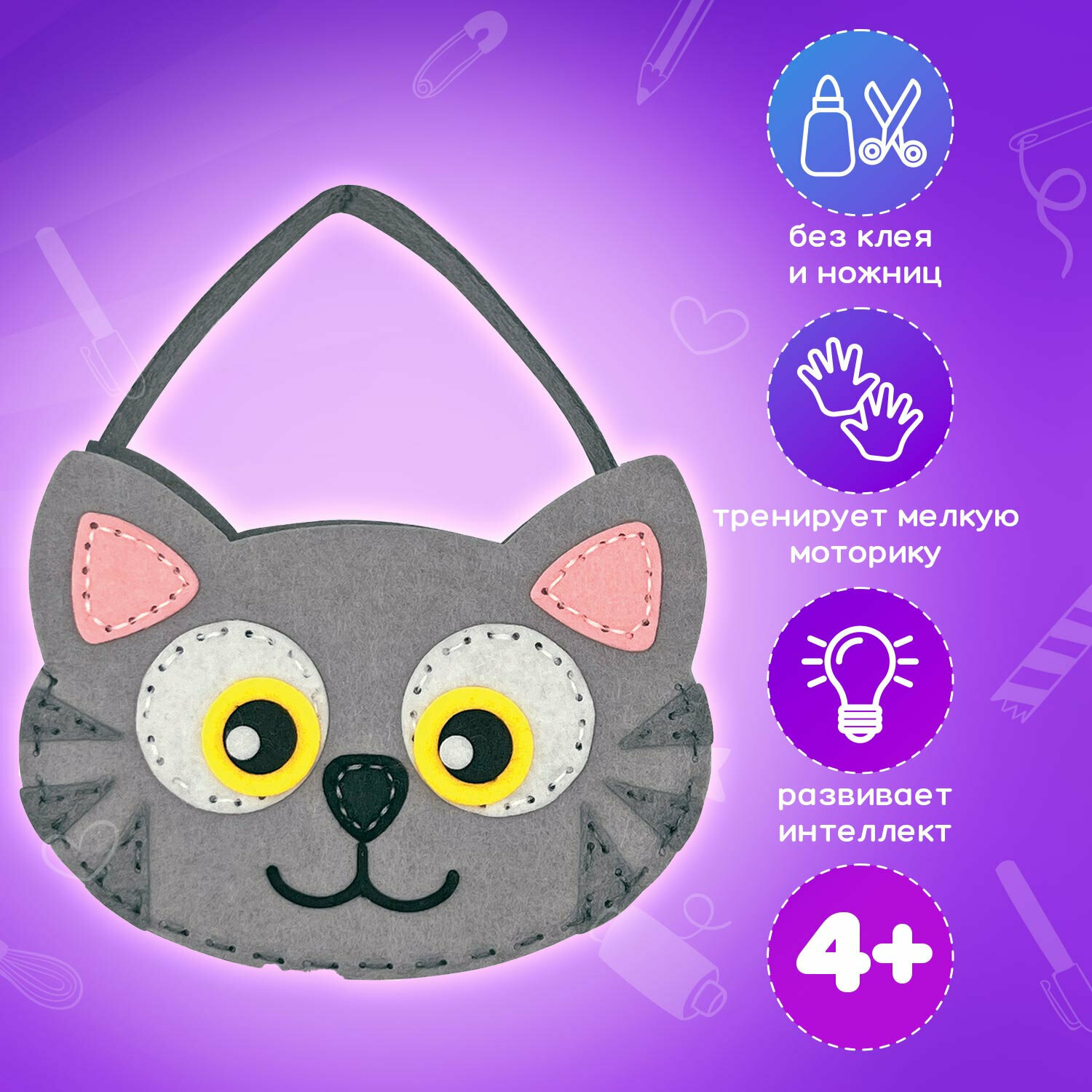 Набор для творчества и рукоделия для шитья сумки / сумочки из фетра для девочек / детей Котик, Юнландия, 664496