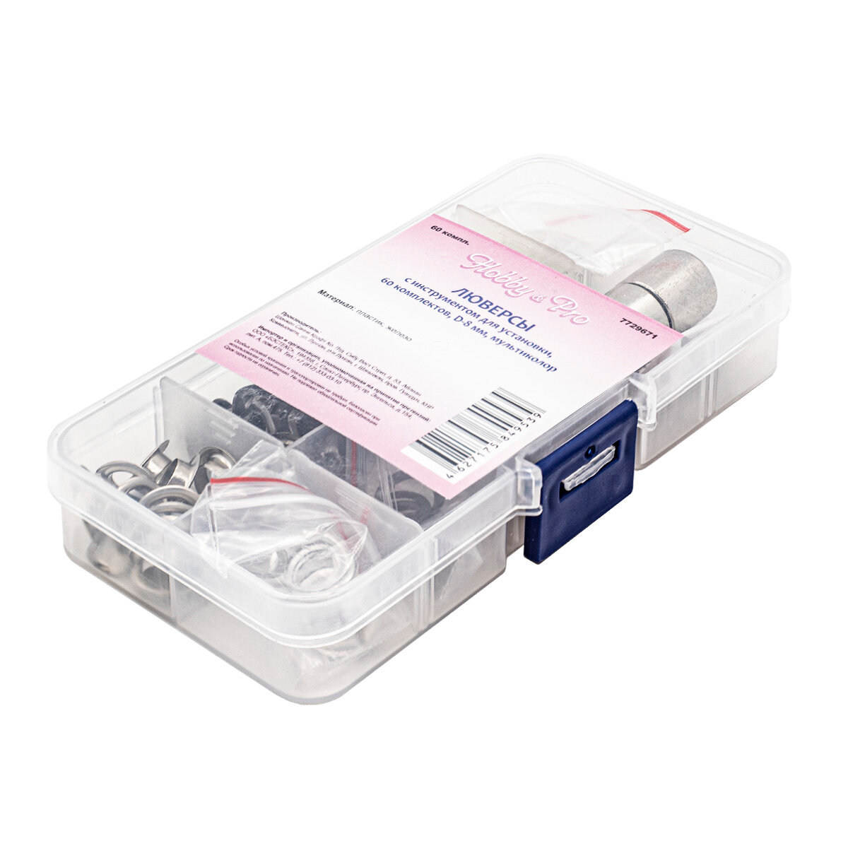 Люверсы 8мм х 60штук с инструментом для установки Hobby&Pro, мультиколор, 7729671 интересное: