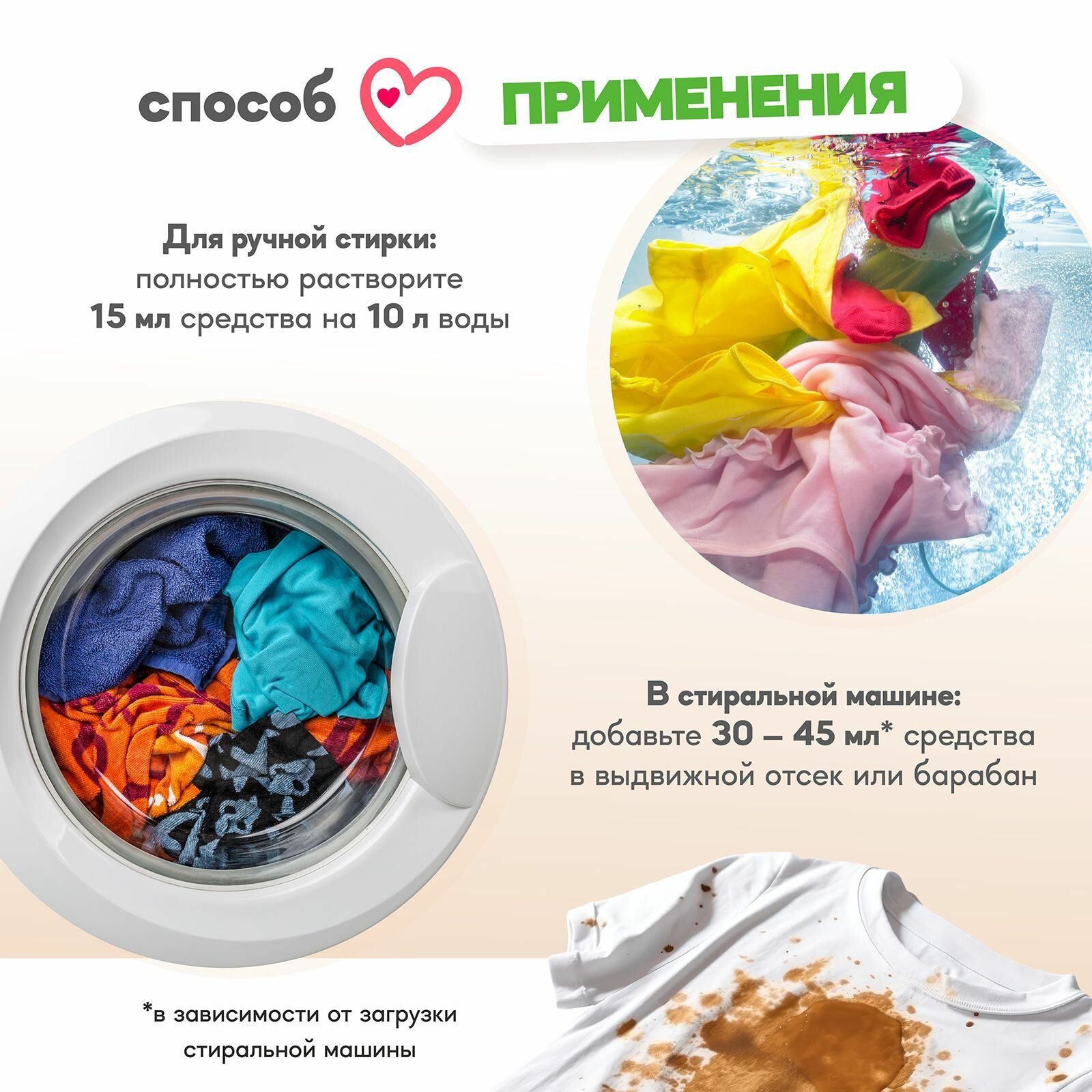 | Эффект | антибактериальный / антистатический / легкая глажка / смягчение ткани / устранение неприятных запахов |