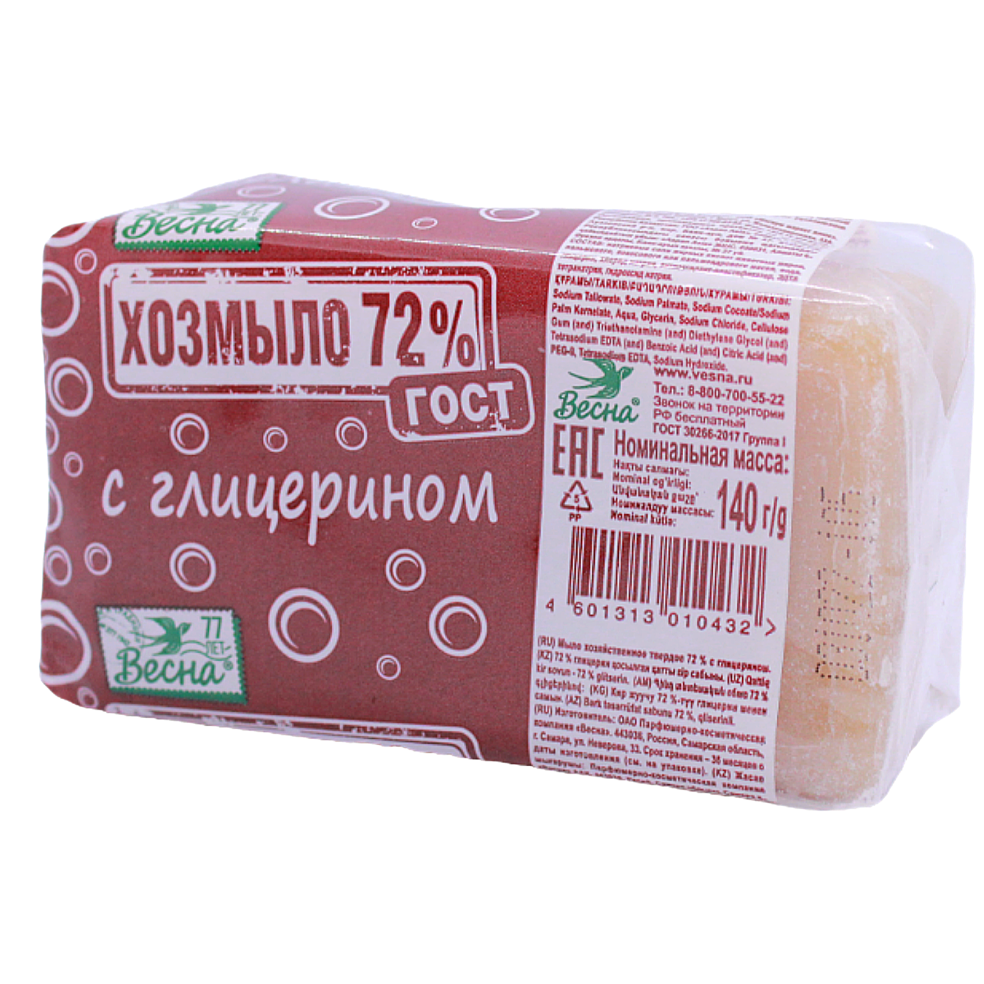 Купить Весна Хозмыло 72% ГОСТ с глицерином 140г