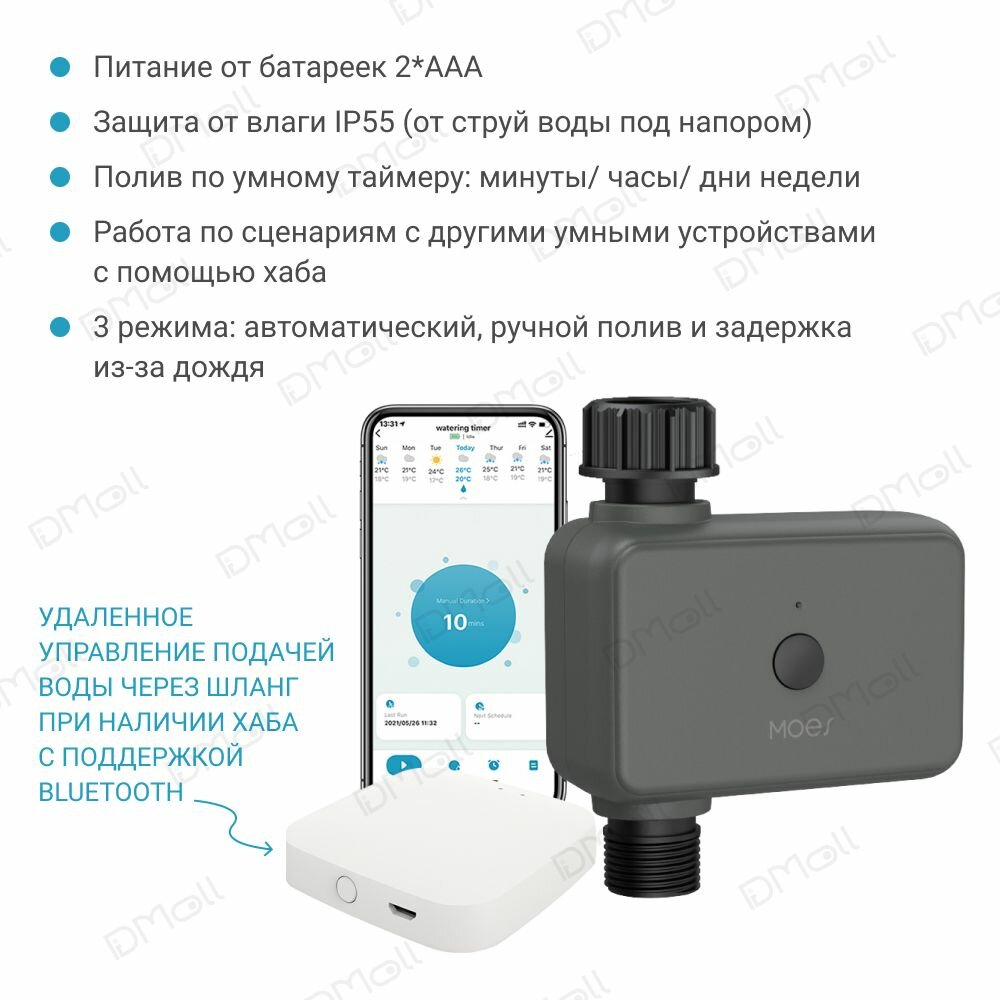Умный кран для полива MOES Bluetooth Watering Valve интересное: