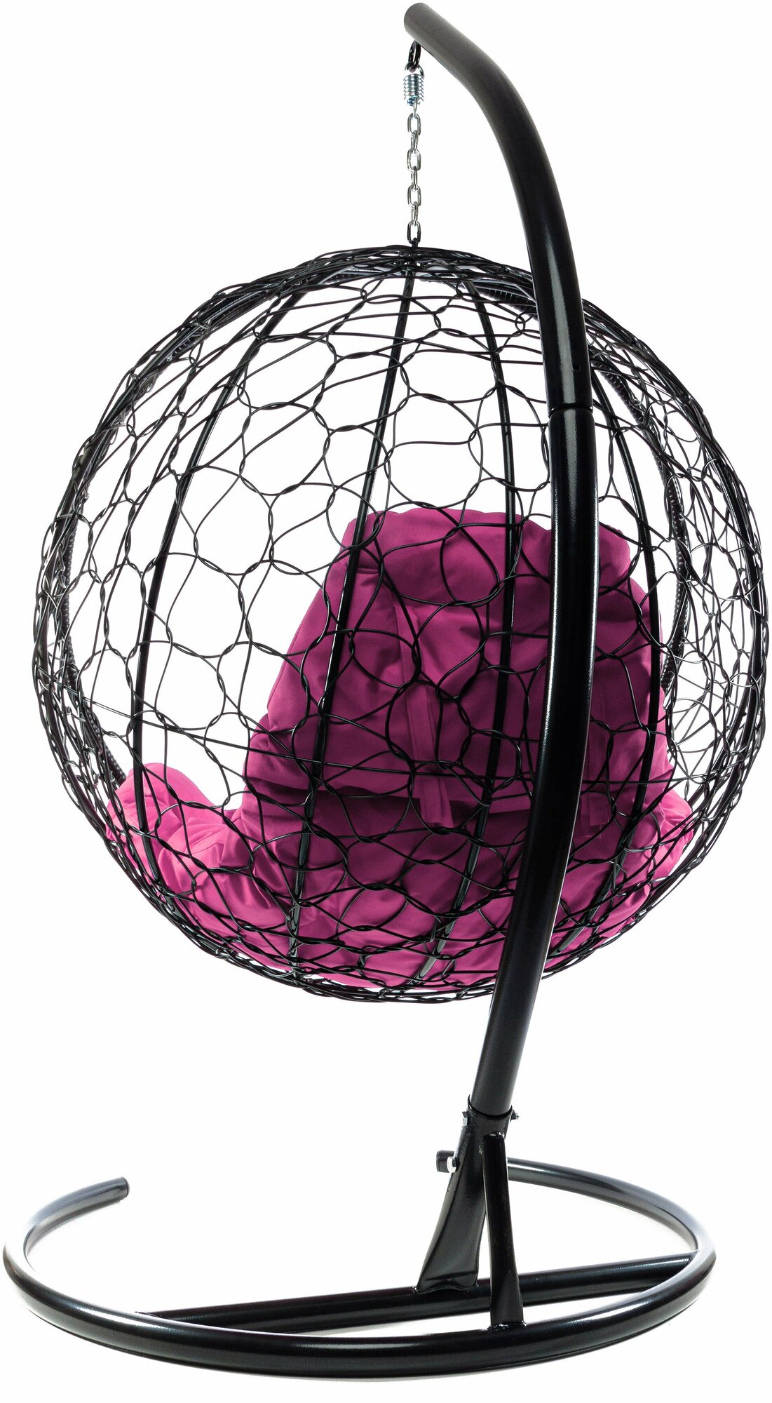Подвесное кресло M-group круг с ротангом чёрное бордовая подушка