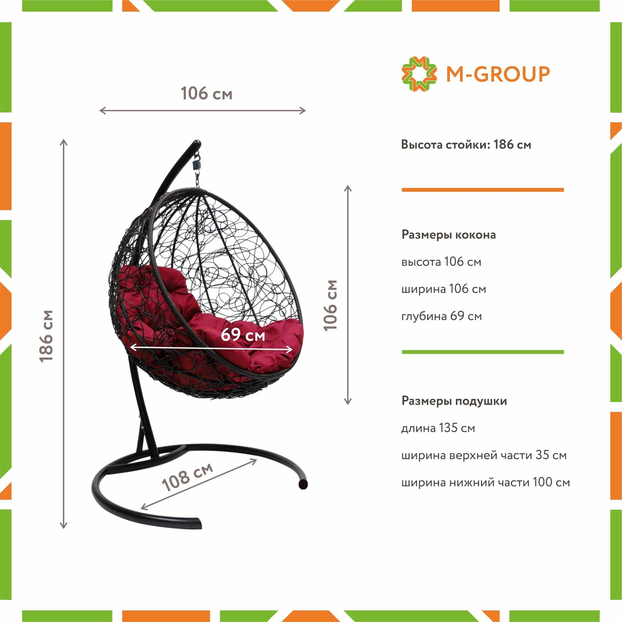 СохранитьПодвесное кресло M-group круг с ротангом чёрное бордовая подушка интересное:
