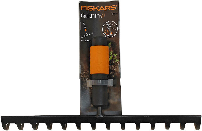 Грабли зубчатые металлический FISKARS QuikFit без черенка, 14 зубьев (1000653)