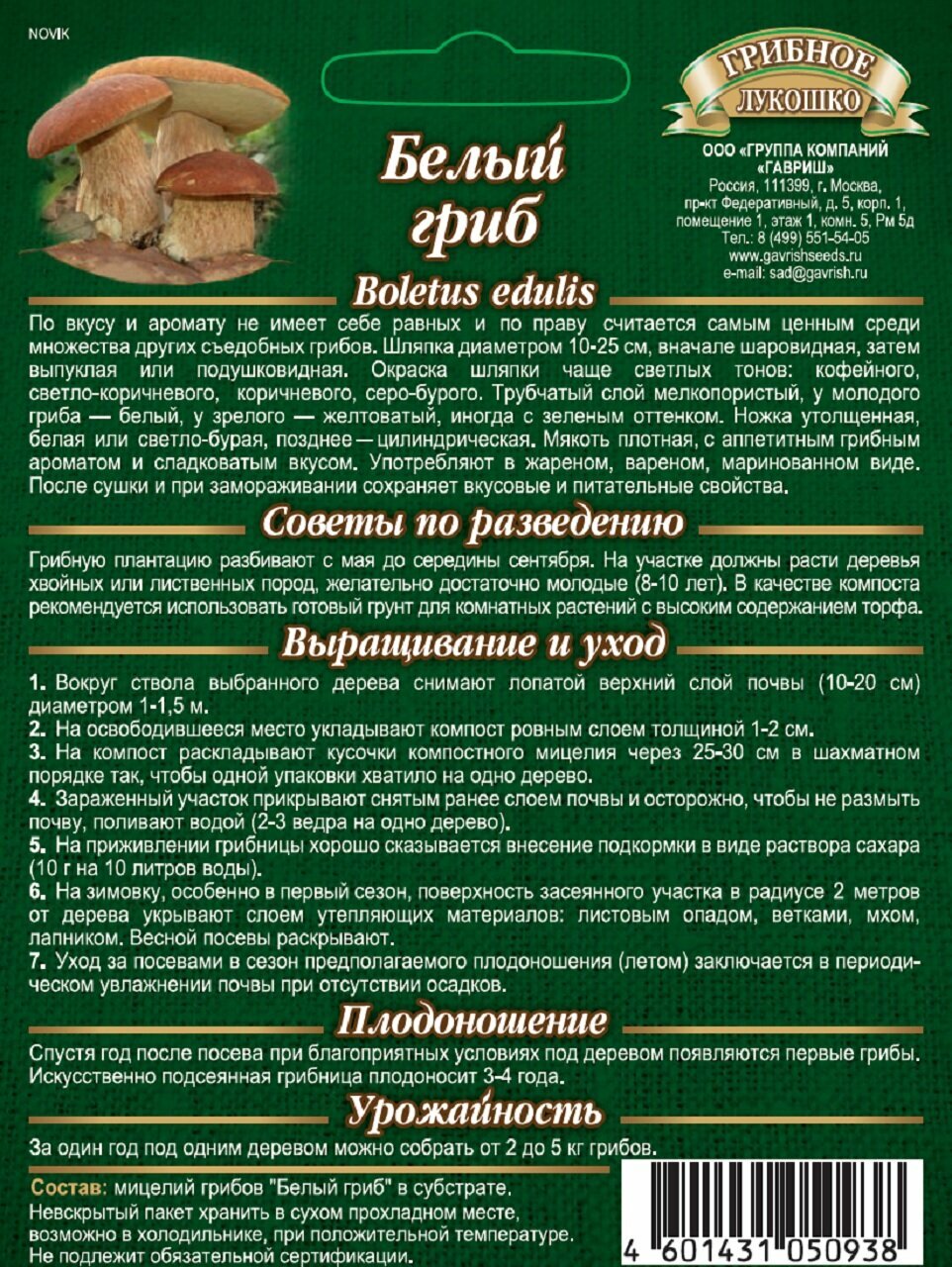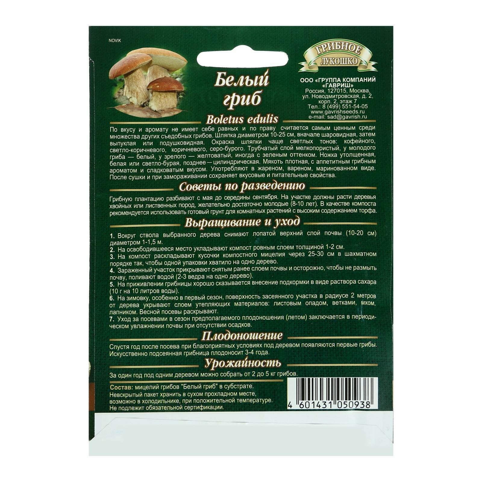 Мицелий Белый гриб на зерновом субстрате, 15мл, Гавриш интересное: