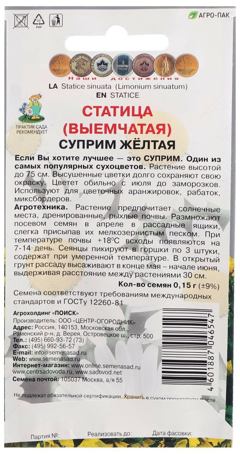 Семена Статица Радужная смесь 0,1 г Агрохолдинг поиск
